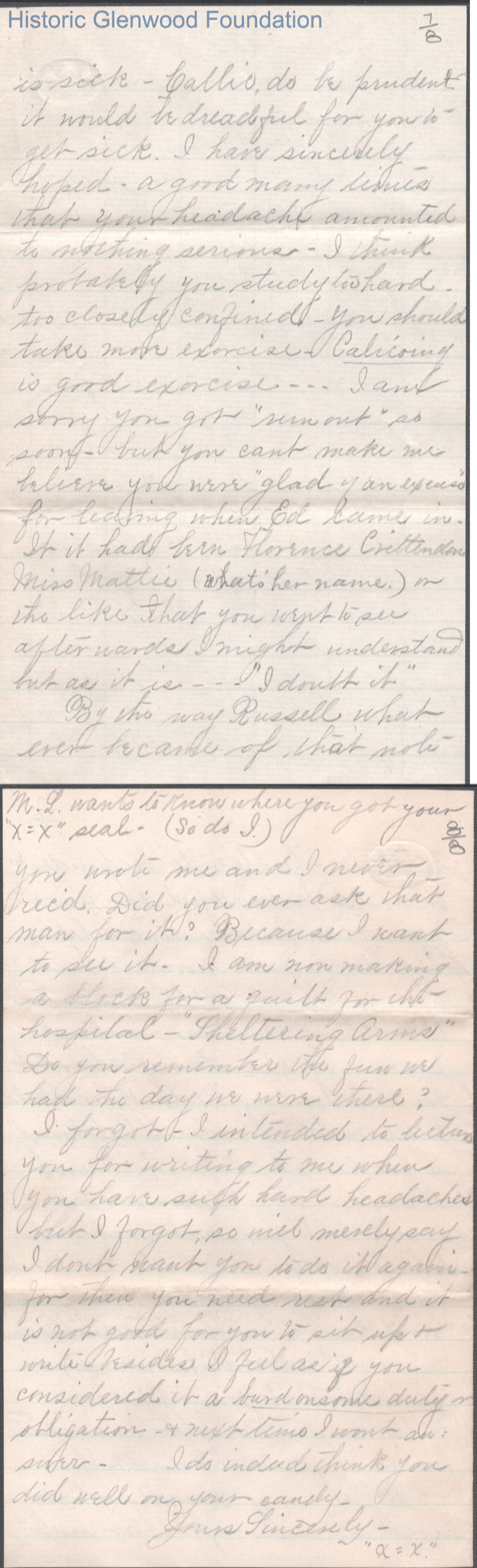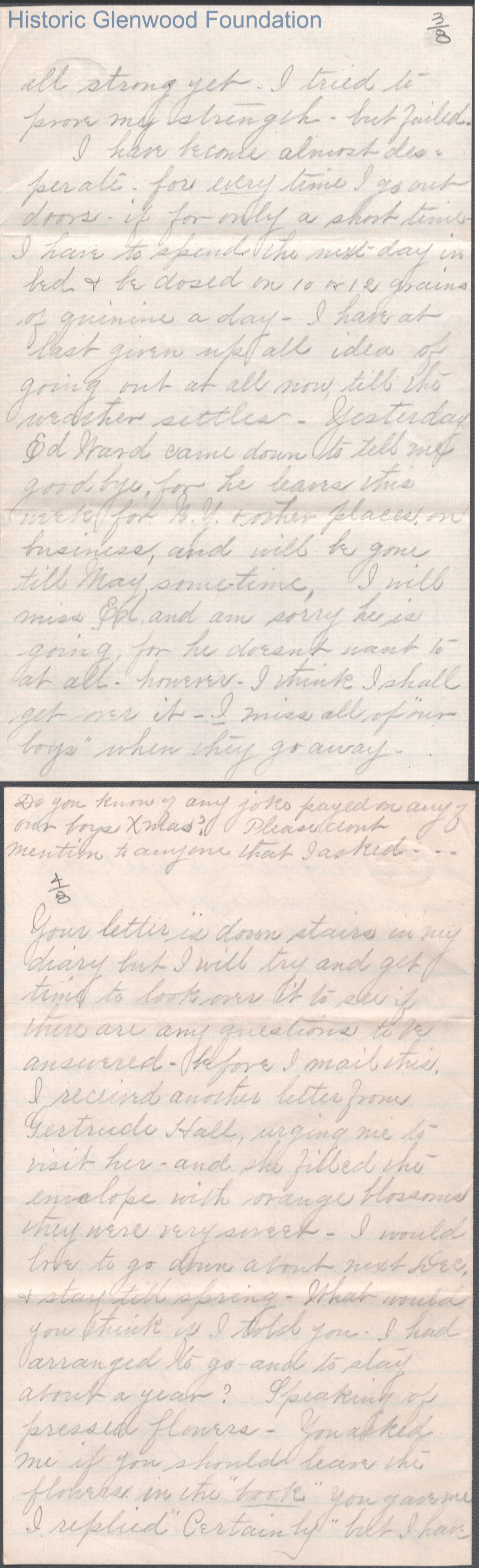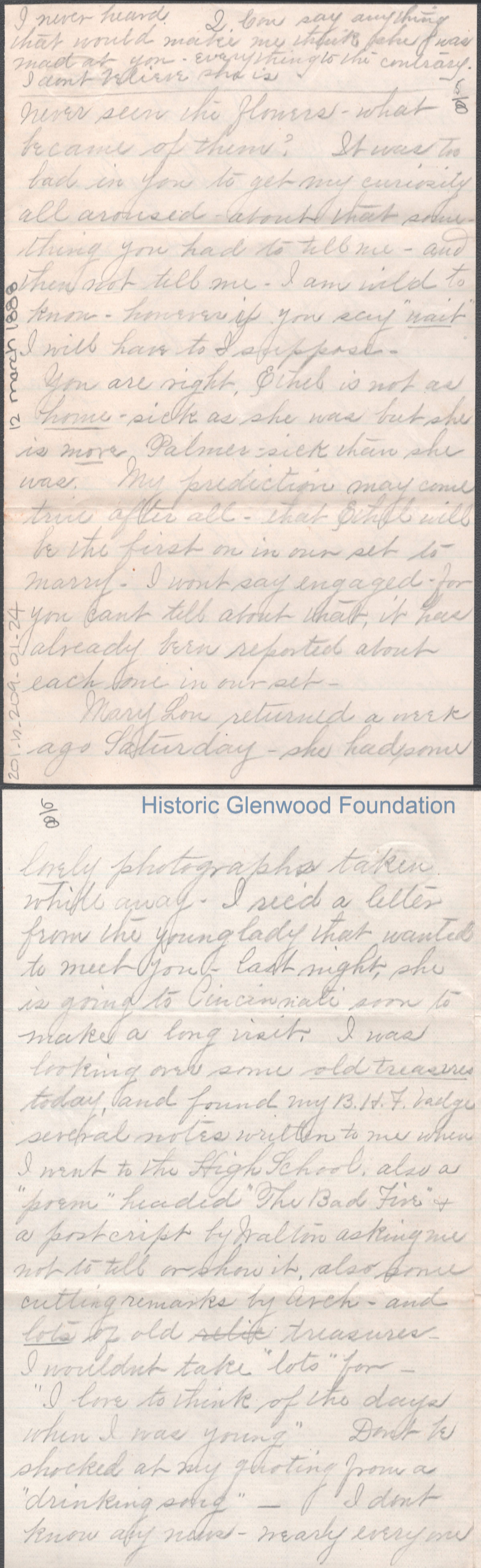 Eight-page letter to Russell G. Quarrier from Elizabeth S. Quarrier, Mar 12, 1888.