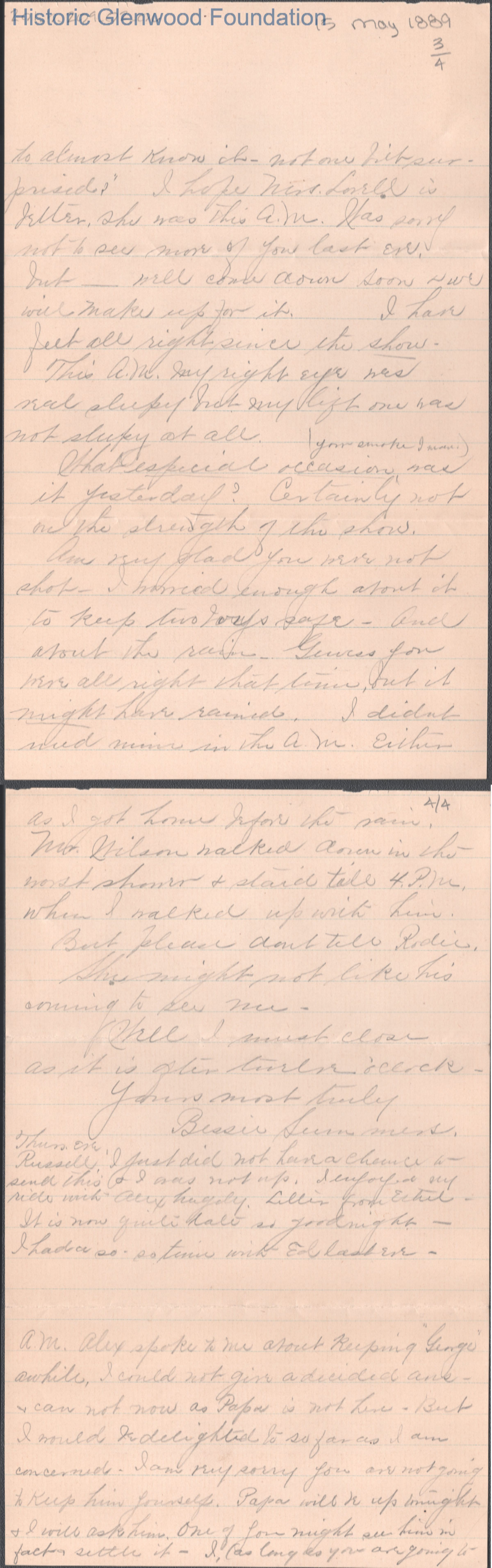 Russell G. Quarrier from Elizabeth S. Quarrier, May 15, 1889