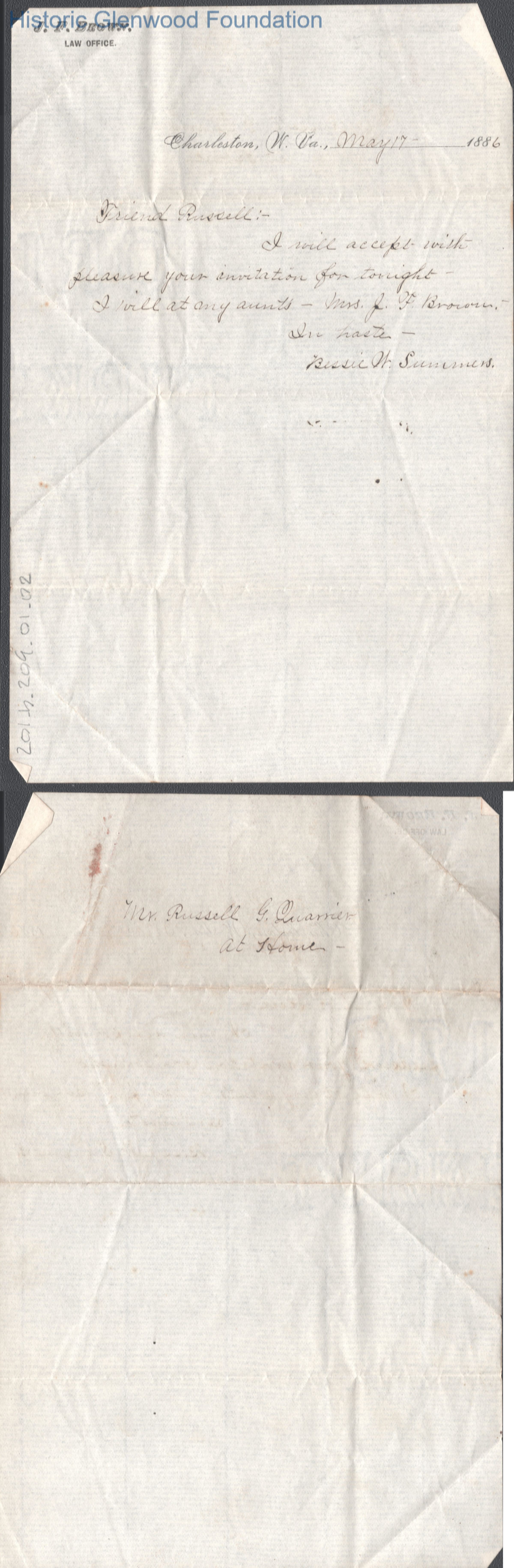 Russell G. Quarrier from Elizabeth S. Quarrier, May 17, 1886