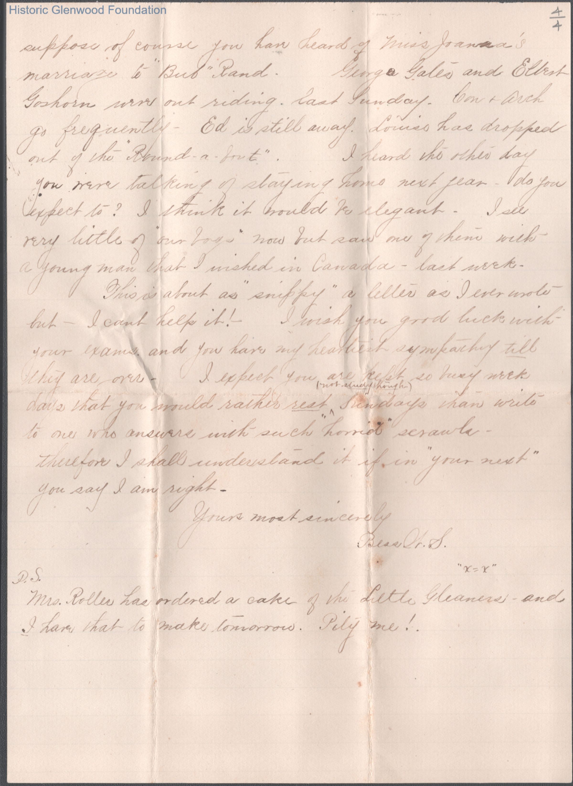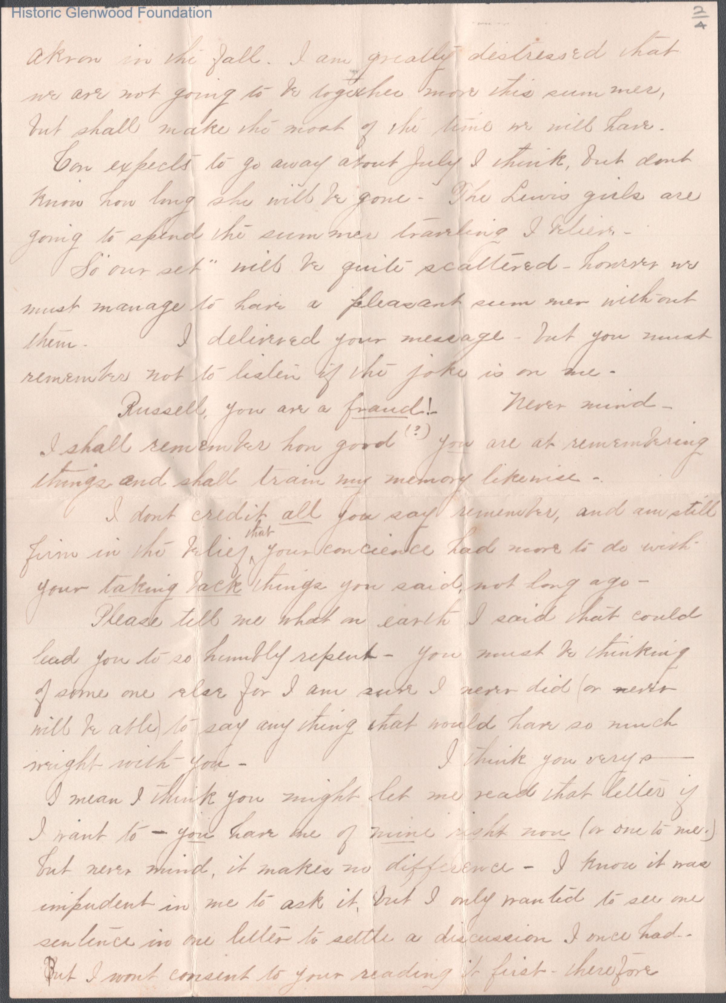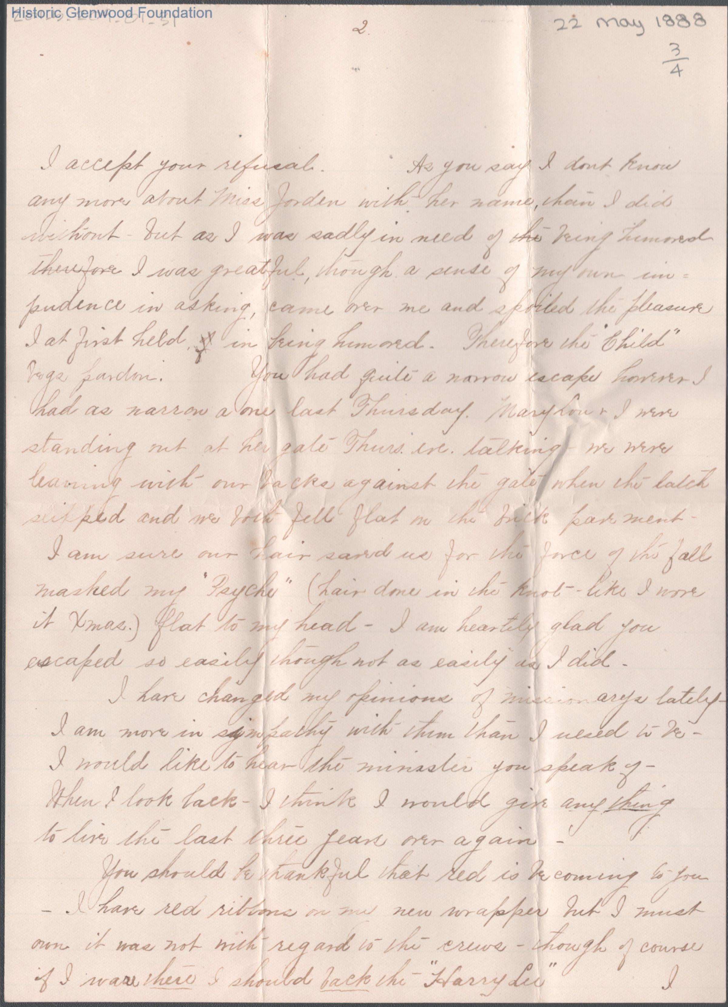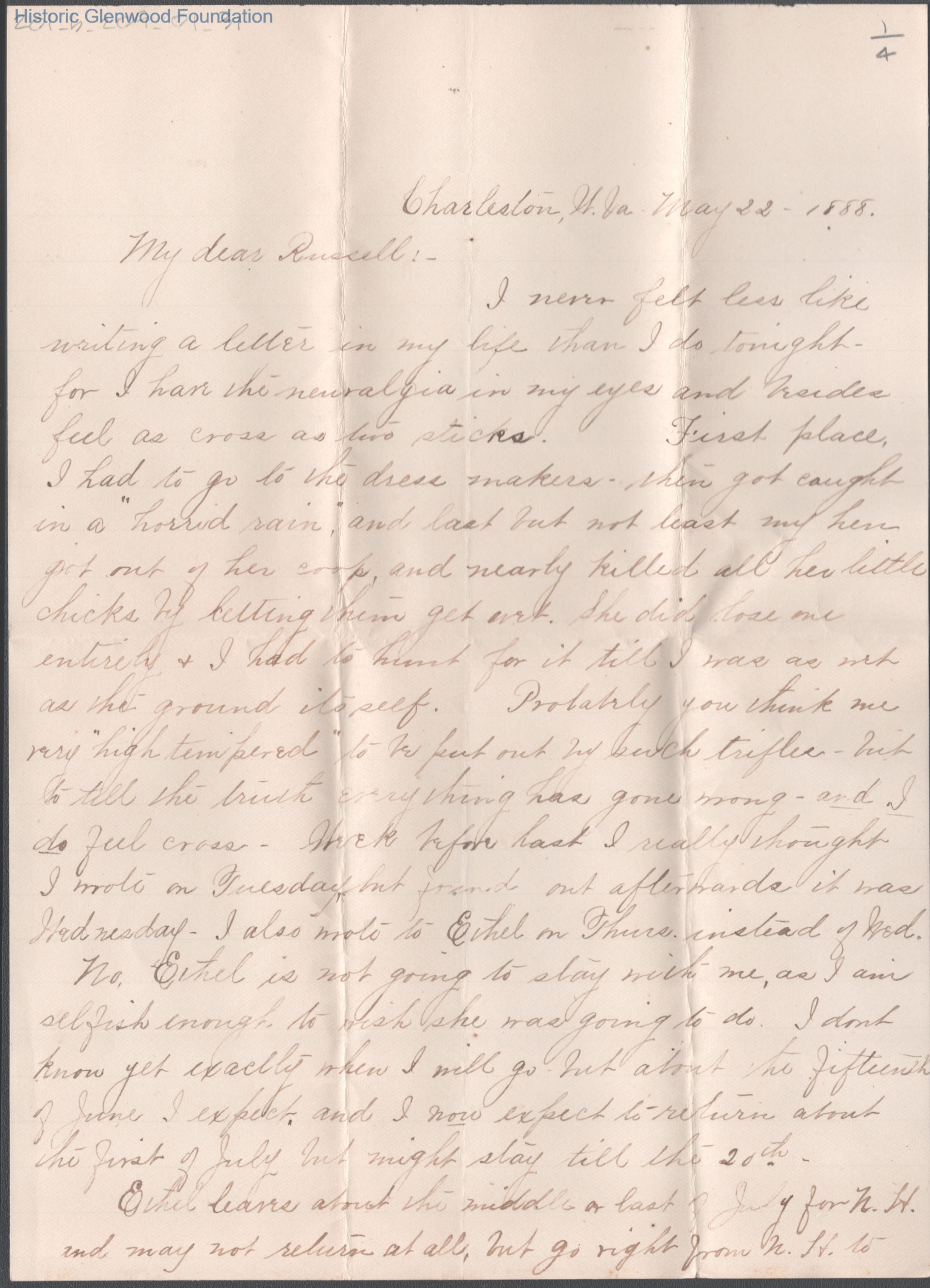 Four-page letter to Russell G. Quarrier from Elizabeth S. Quarrier, May 22, 1888.