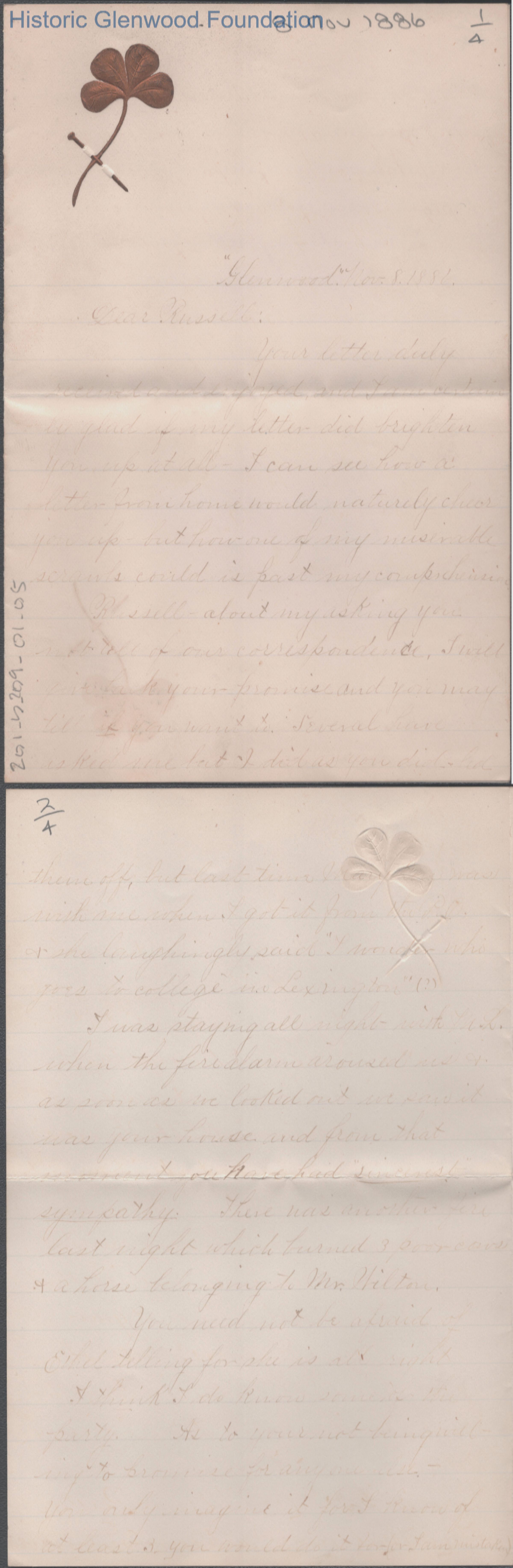 Russell G. Quarrier from Elizabeth S. Quarrier, Nov 8, 1886