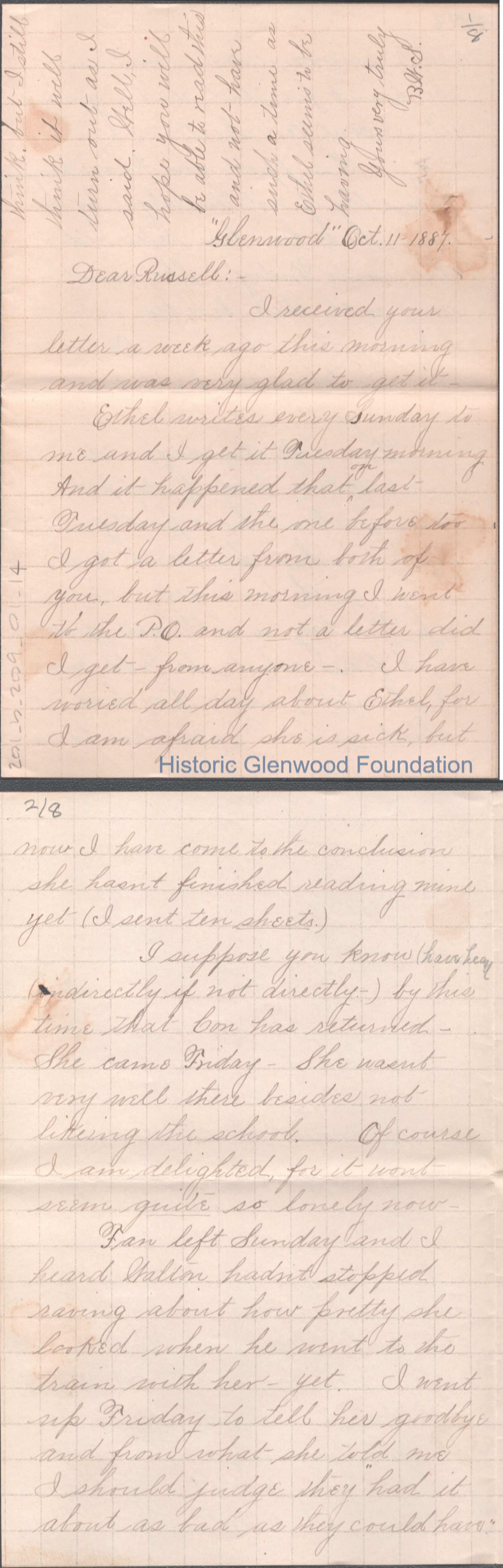 Russell G. Quarrier from Elizabeth S. Quarrier, Oct 11, 1887