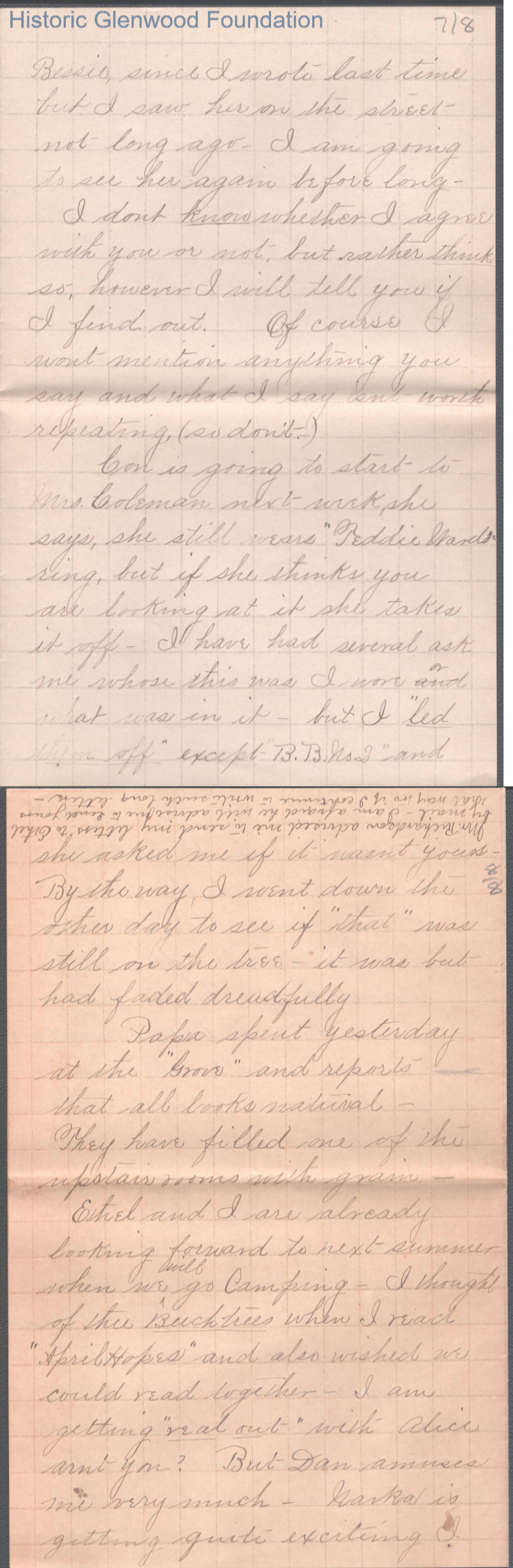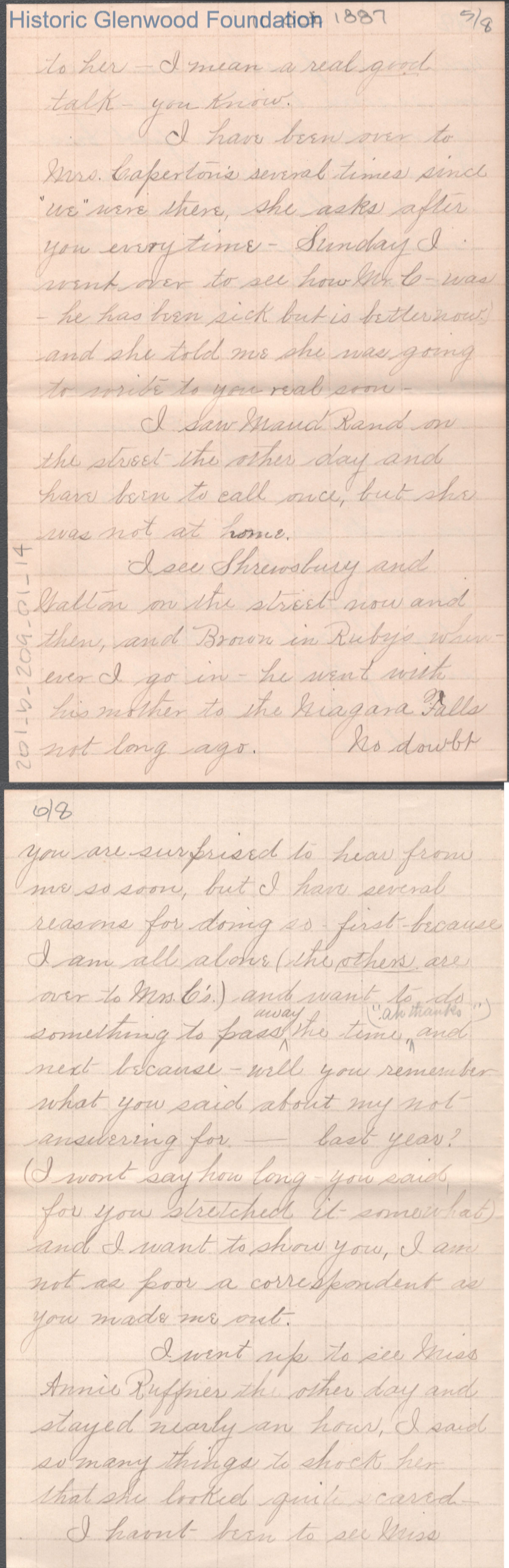 Eight-page letter to Russell G. Quarrier from Elizabeth S. Quarrier, Oct 11, 1887.