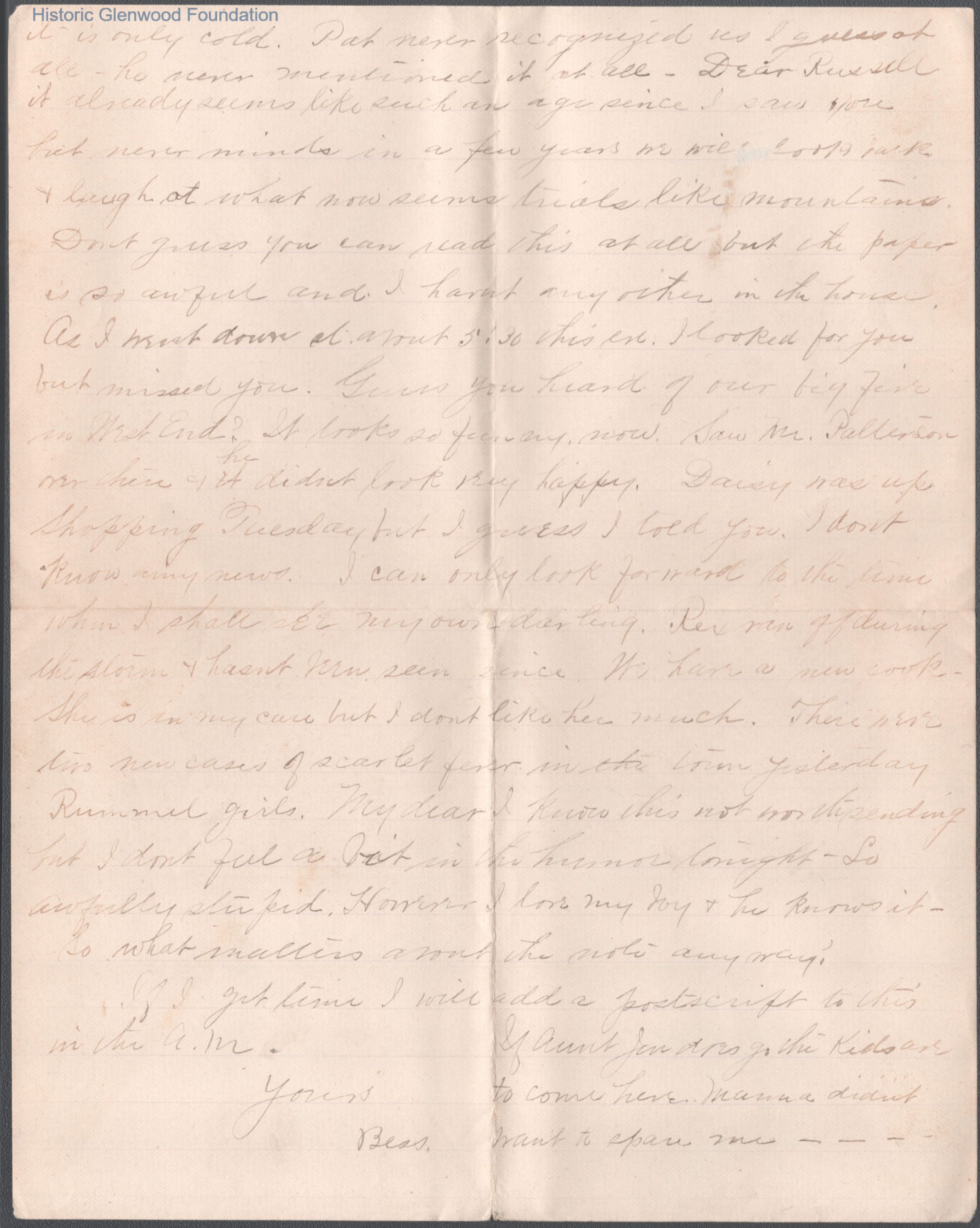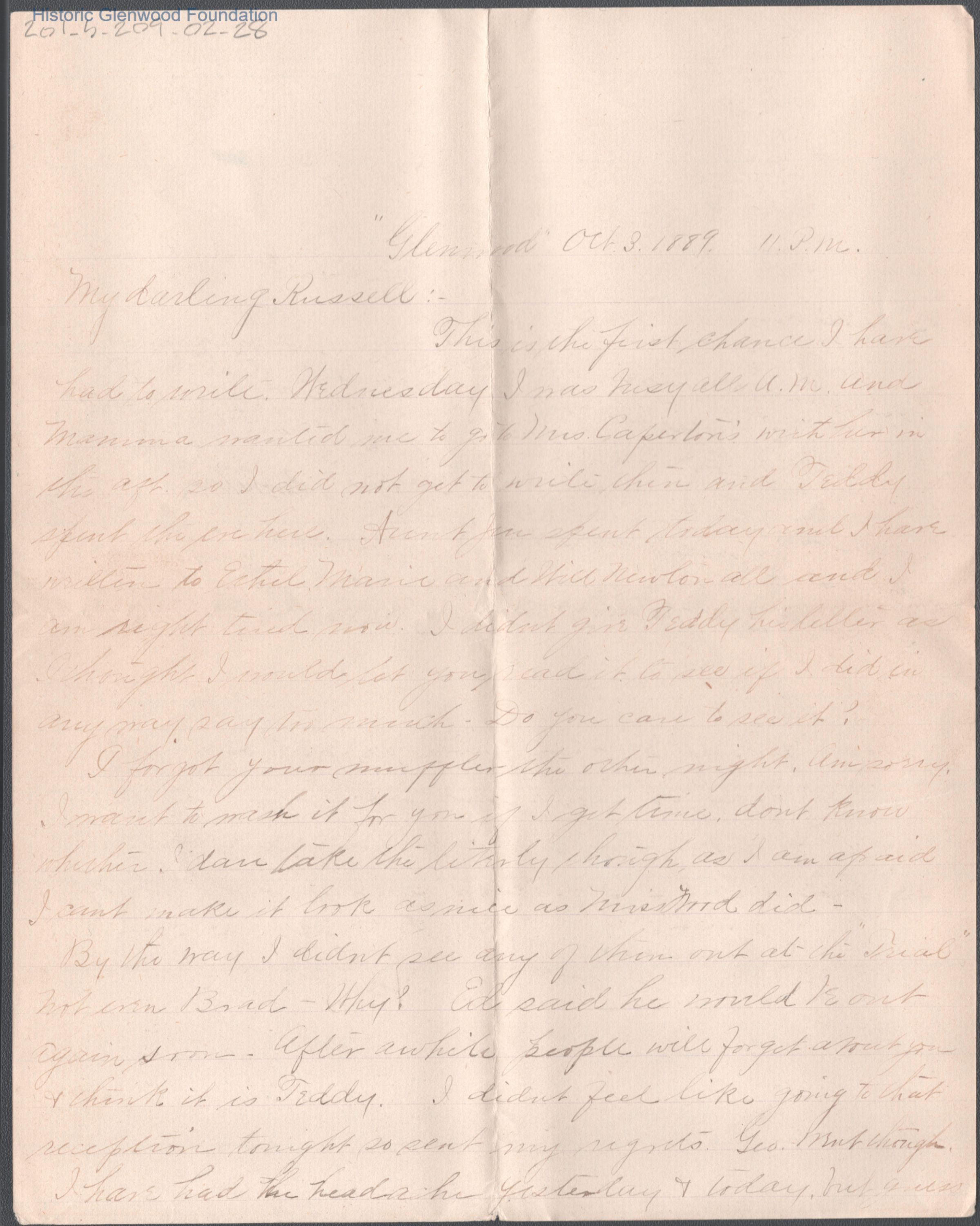 Russell G. Quarrier from Elizabeth S. Quarrier, Oct 3, 1889