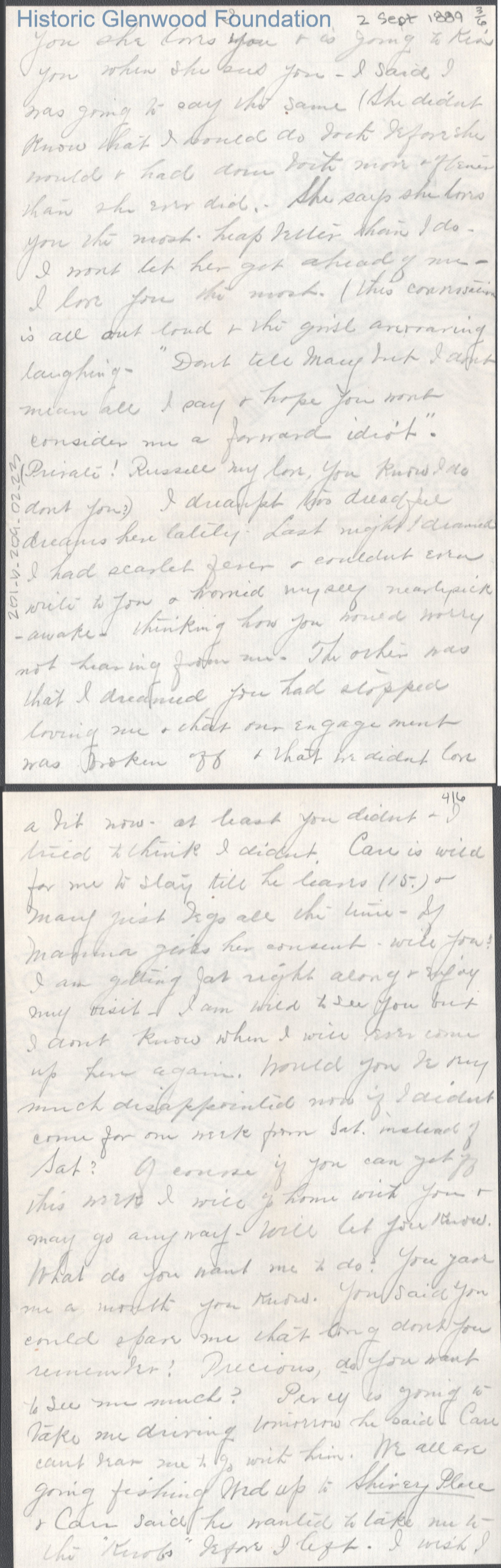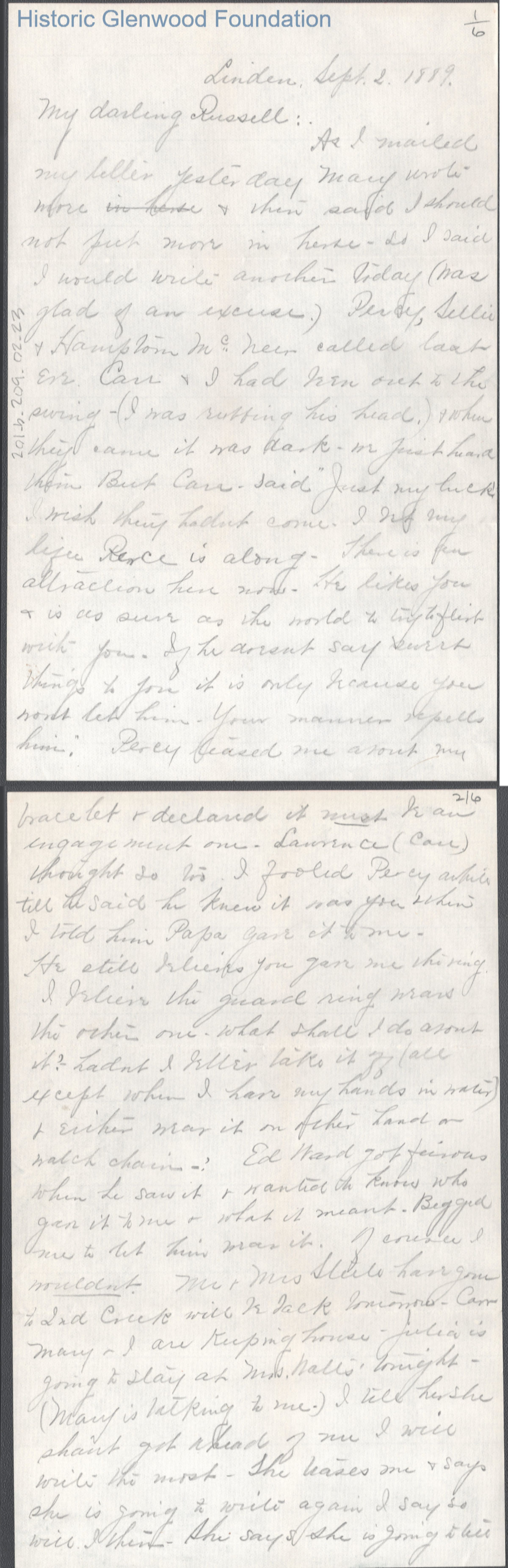 Russell G. Quarrier from Elizabeth S. Quarrier, Sep 2, 1889