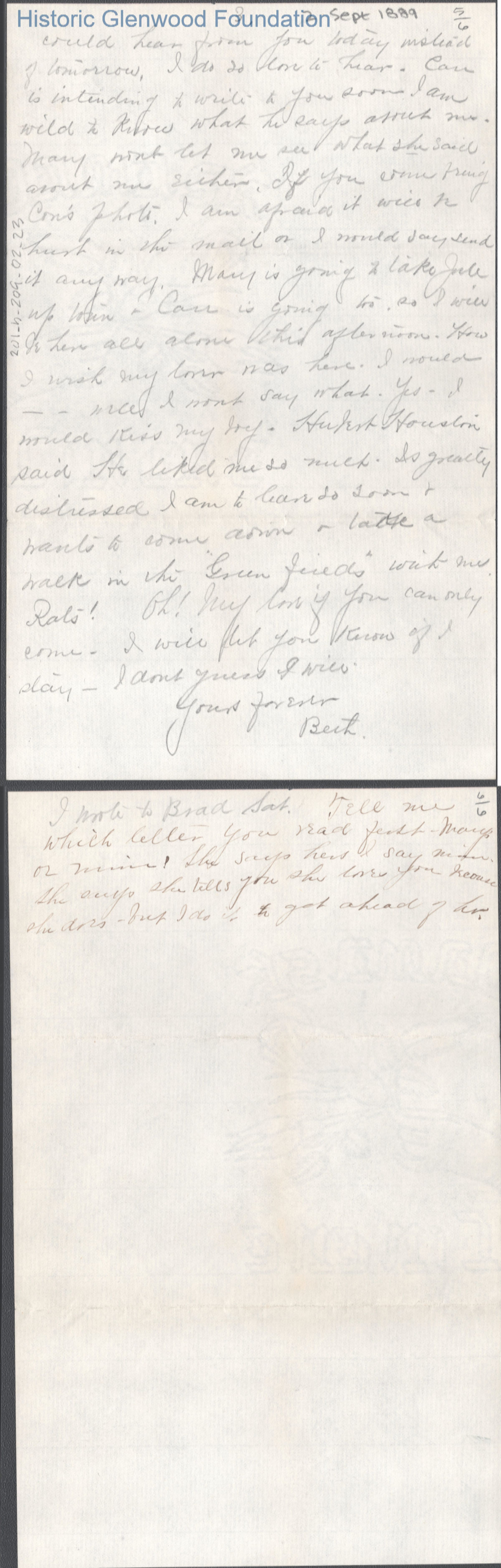 Six-page letter to Russell G. Quarrier from Elizabeth S. Quarrier, Sep 2, 1889.