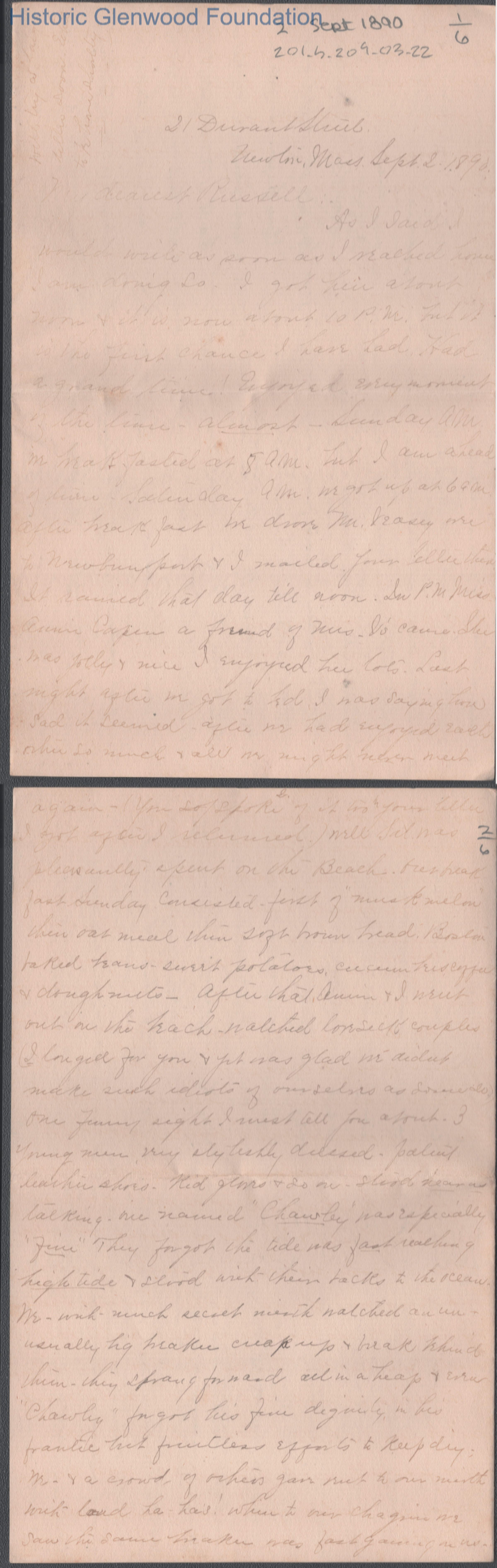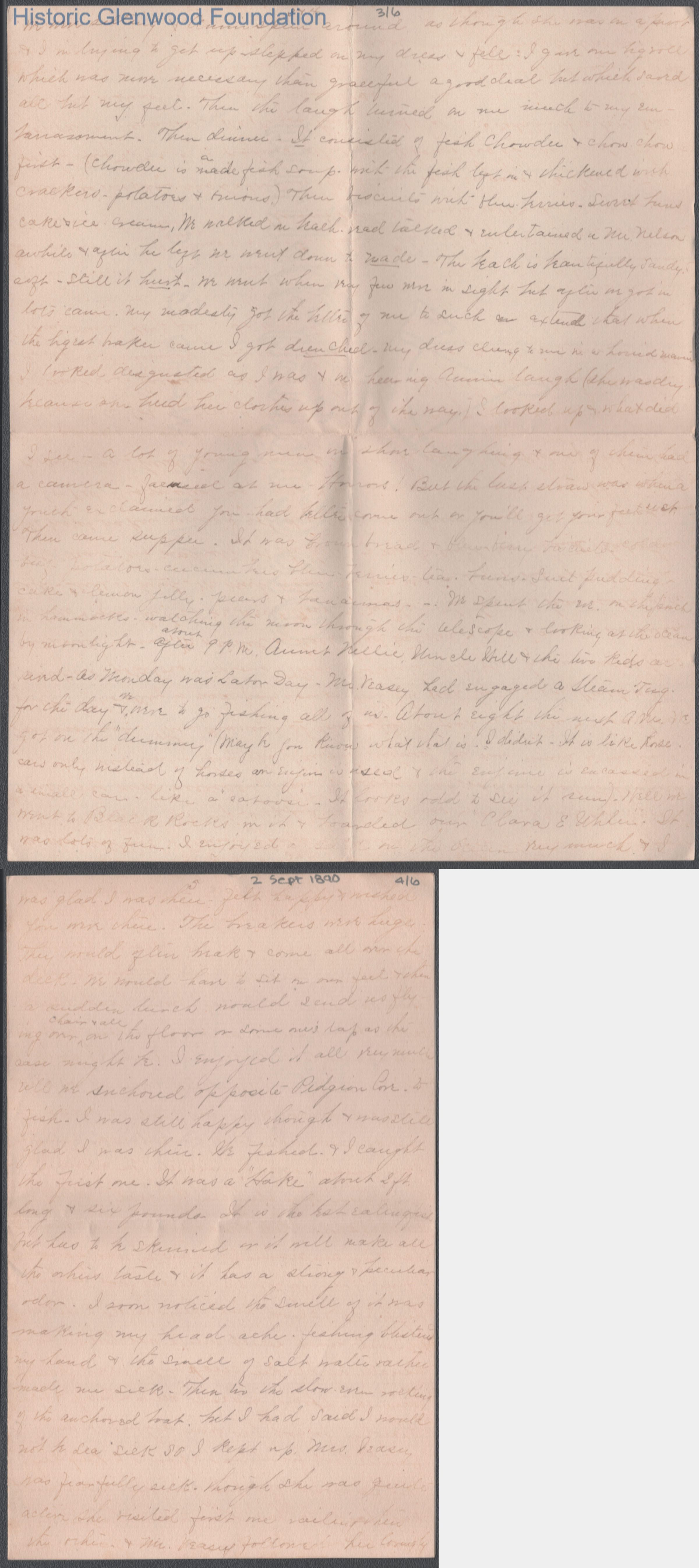 Six-page letter to Russell G. Quarrier from Elizabeth S. Quarrier, Sep 2, 1890.