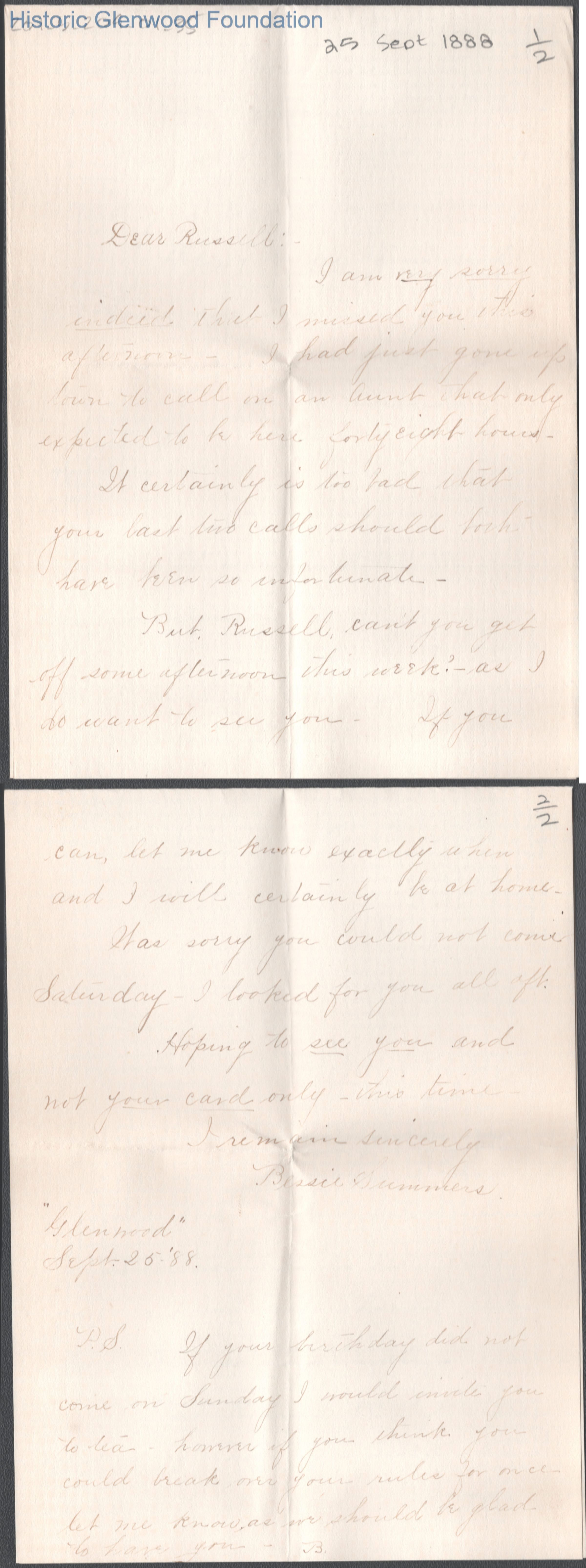 Russell G. Quarrier from Elizabeth S. Quarrier, Sep 25, 1888