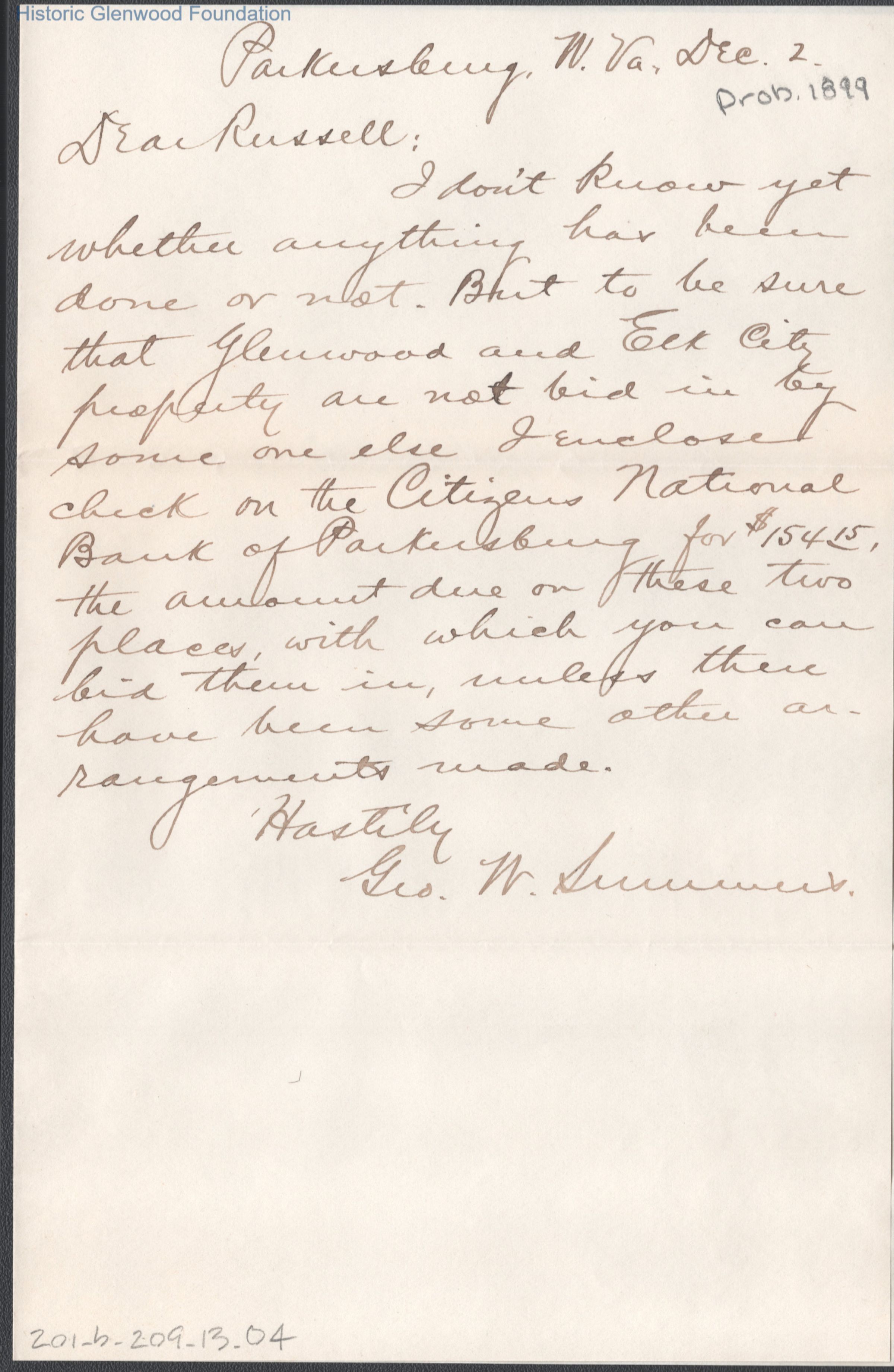 Russell G. Quarrier from George W. Summers, Dec 2, 1899