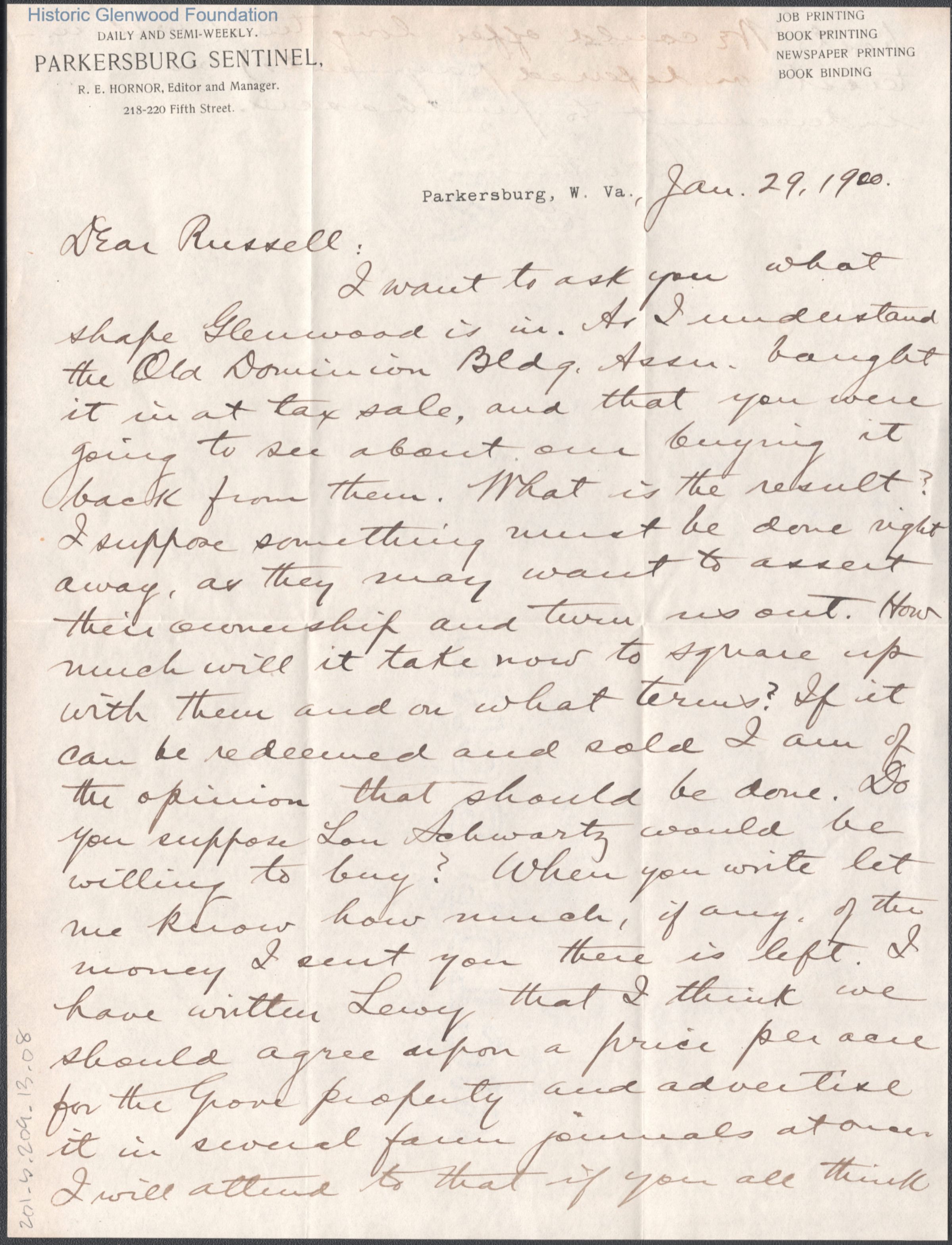 Russell G. Quarrier from George W. Summers, Jan 29, 1900