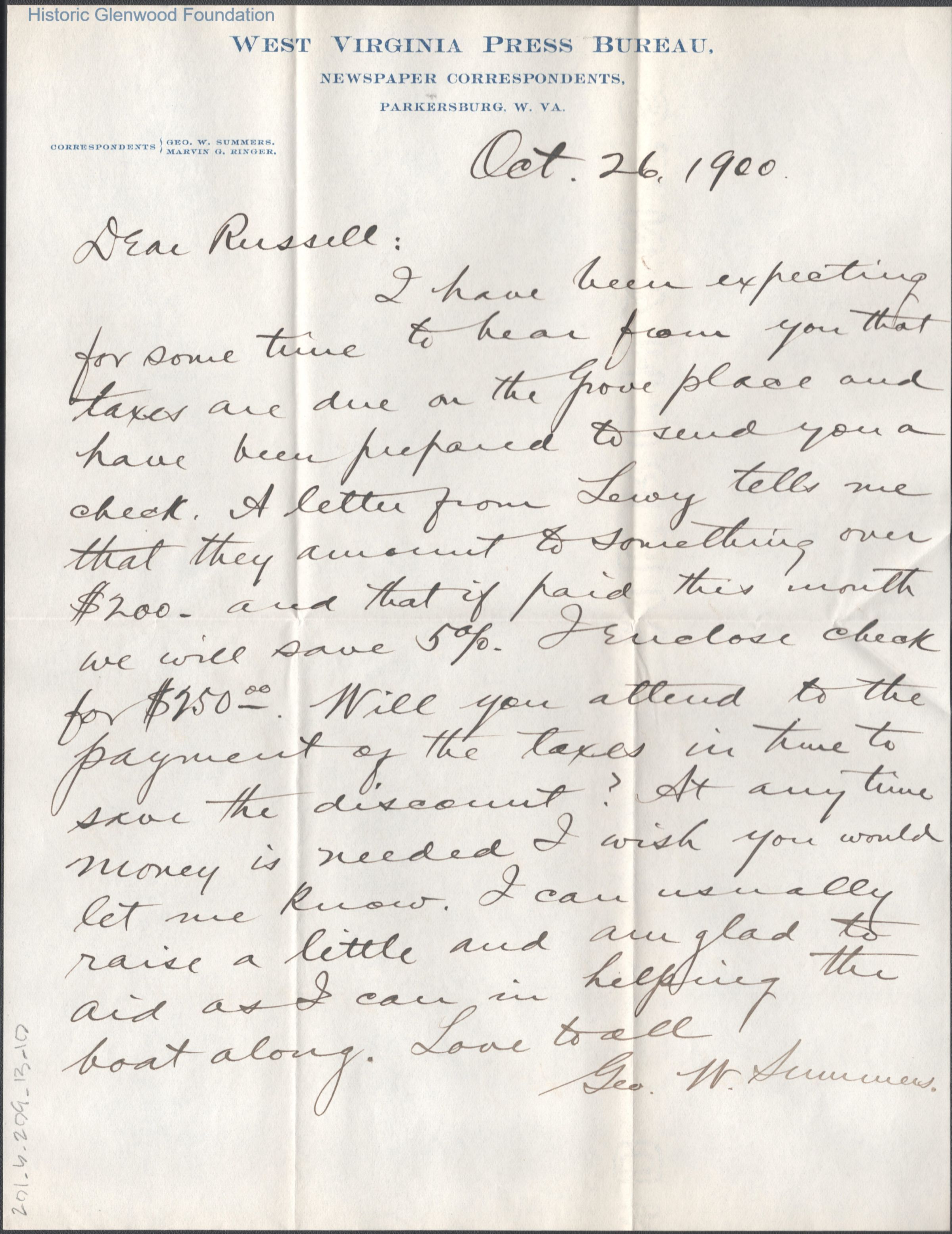 Russell G. Quarrier from George W. Summers, Oct 26, 1900