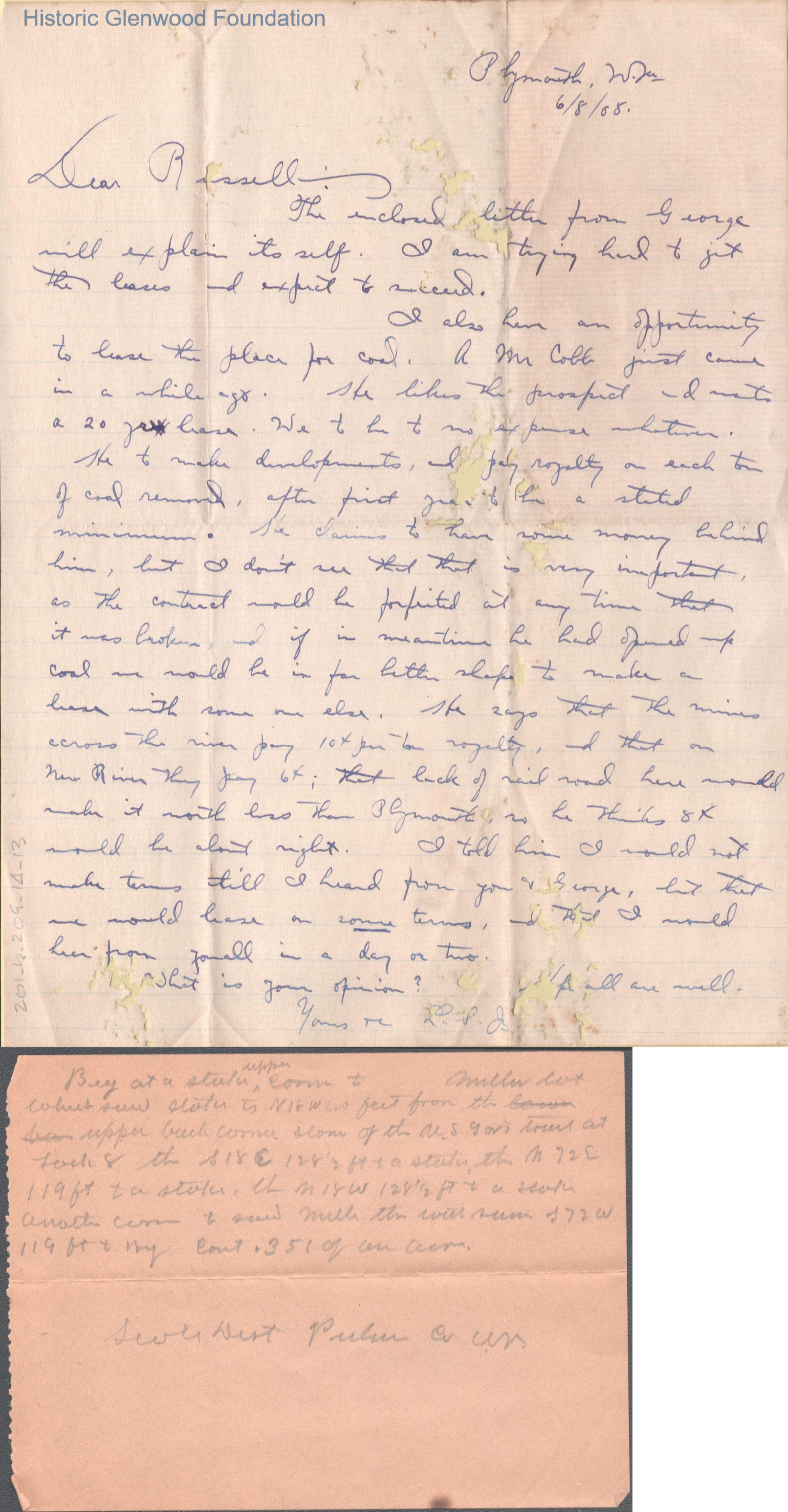 Two-page letter to Russell G. Quarrier from Lewis Summers, Jr., Jun 8, 1905.