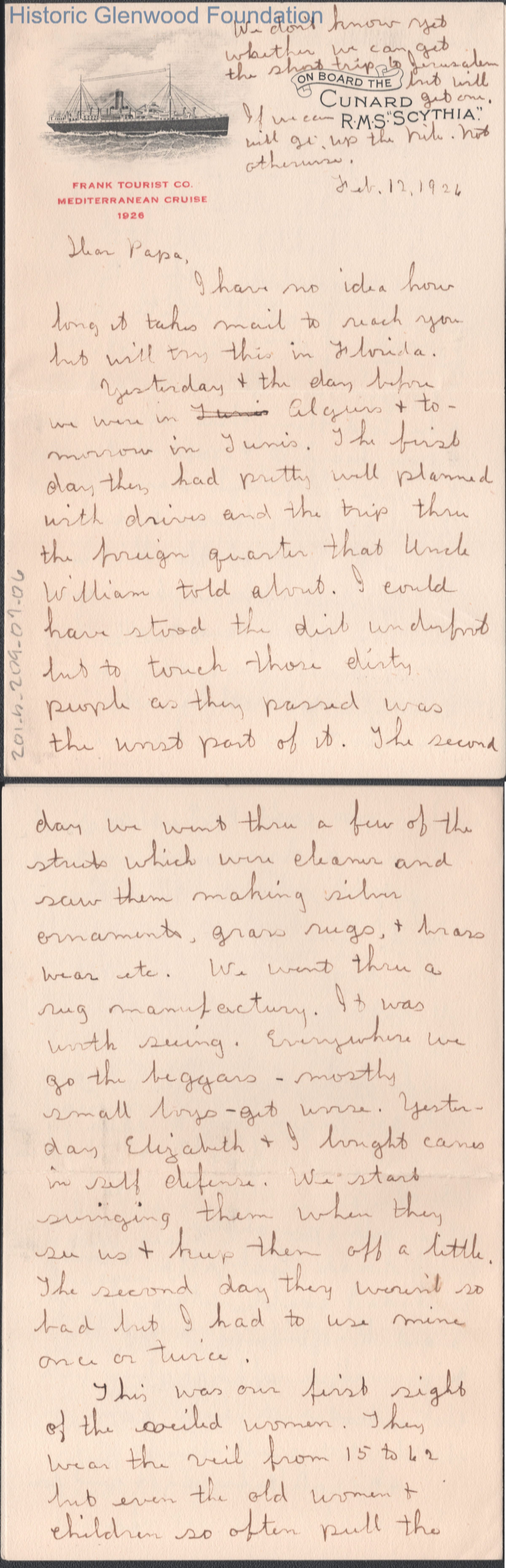Four-page letter to Russell G. Quarrier from daughter Lucy S. Quarrier, Feb 17, 1926.
