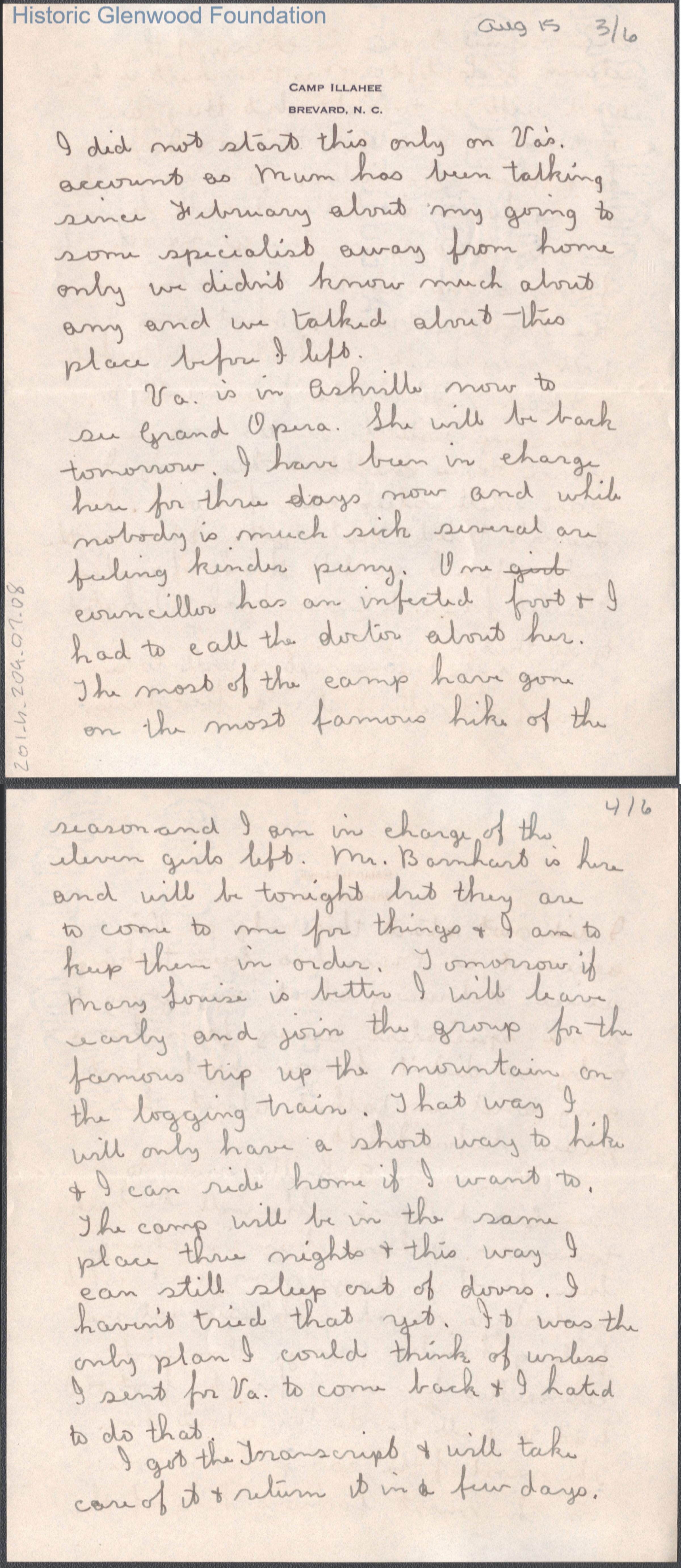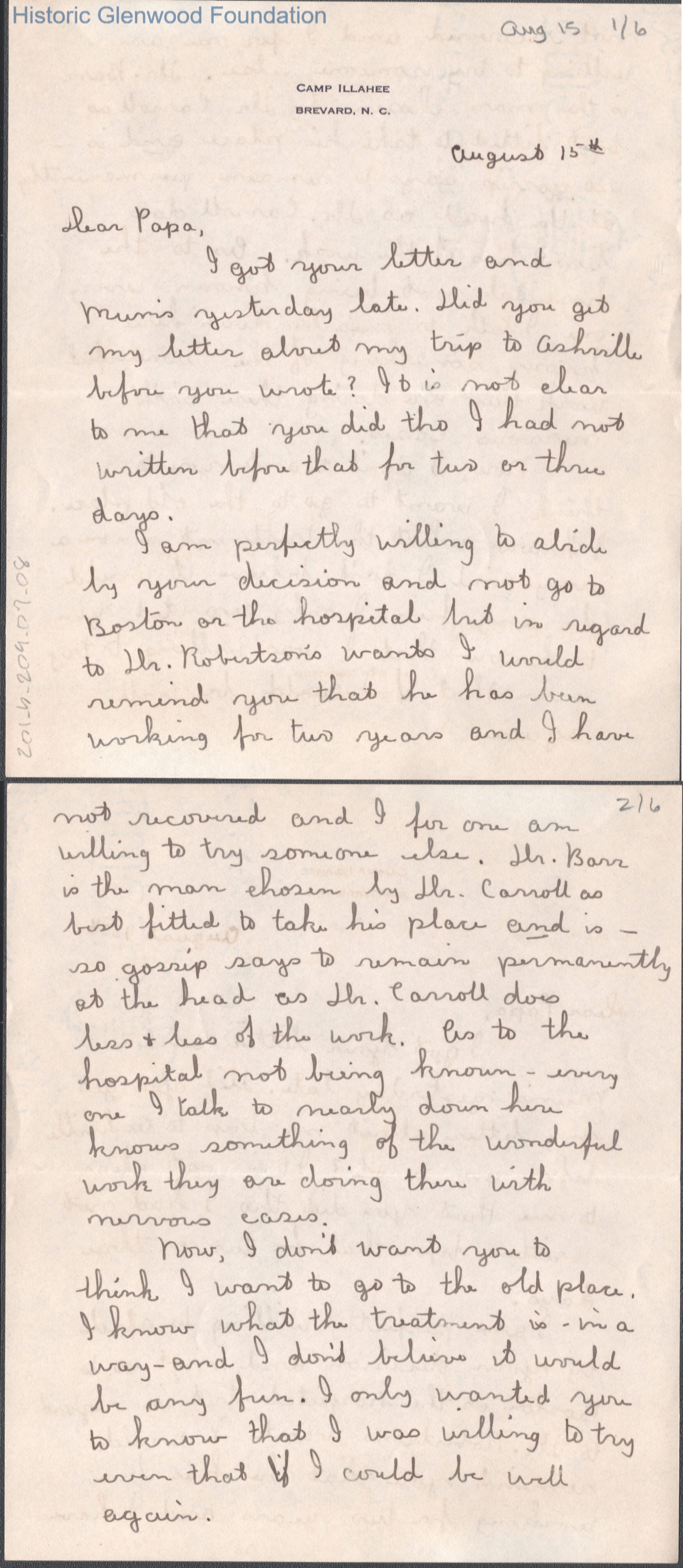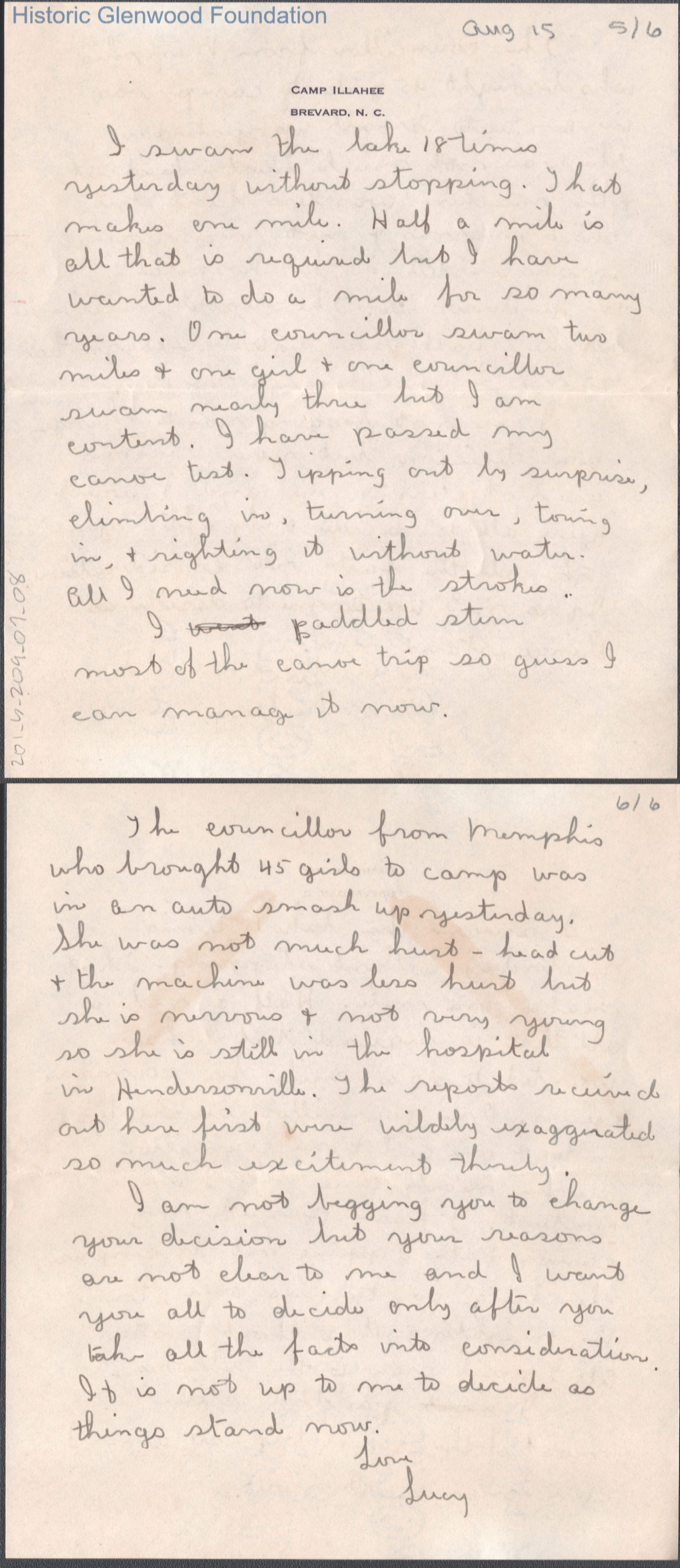Six-page letter to Russell G. Quarrier from daughter Lucy S. Quarrier, unknown year ("August 15" is noted).Creator