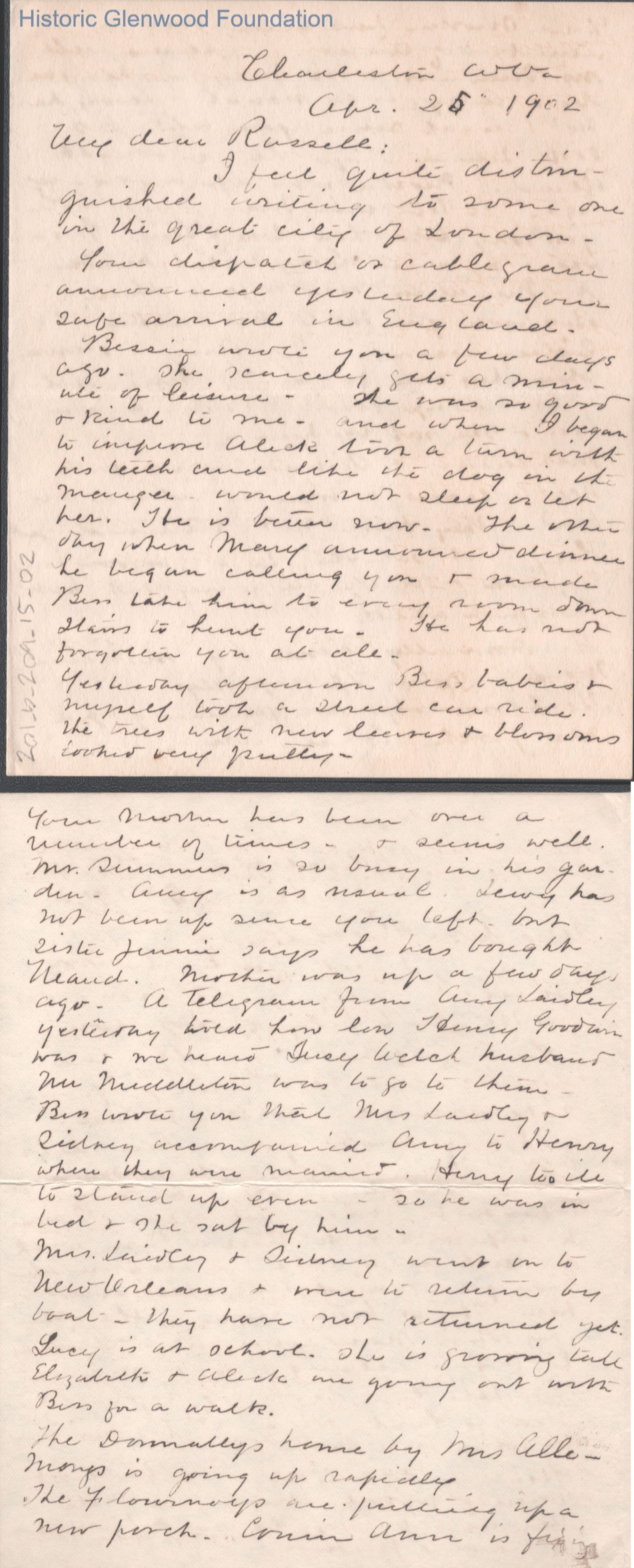 Russell G. Quarrier from Lucy W. Summers, Apr 25, 1902