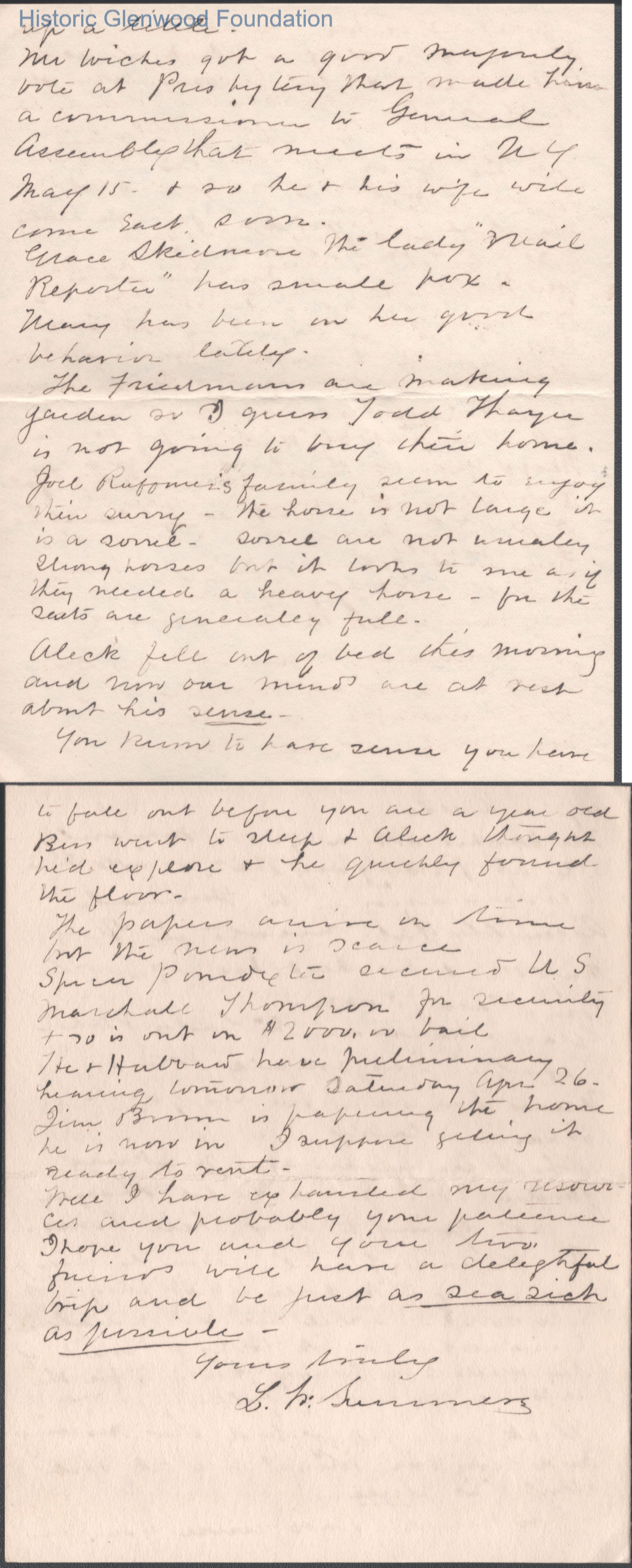 Four-page letter to Russell G. Quarrier from Lucy W. Summers, Apr 25, 1902.