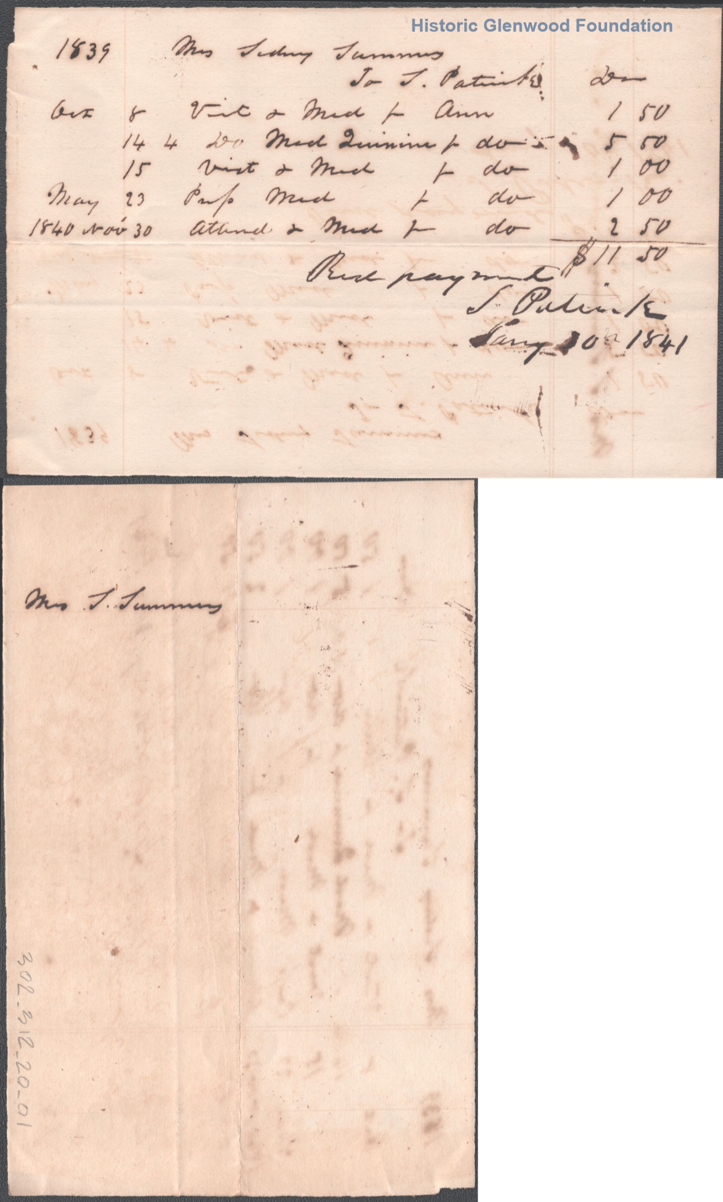 Sydney Lucy Summers Summers, bill from Dr. Spicer Patrick, 1839