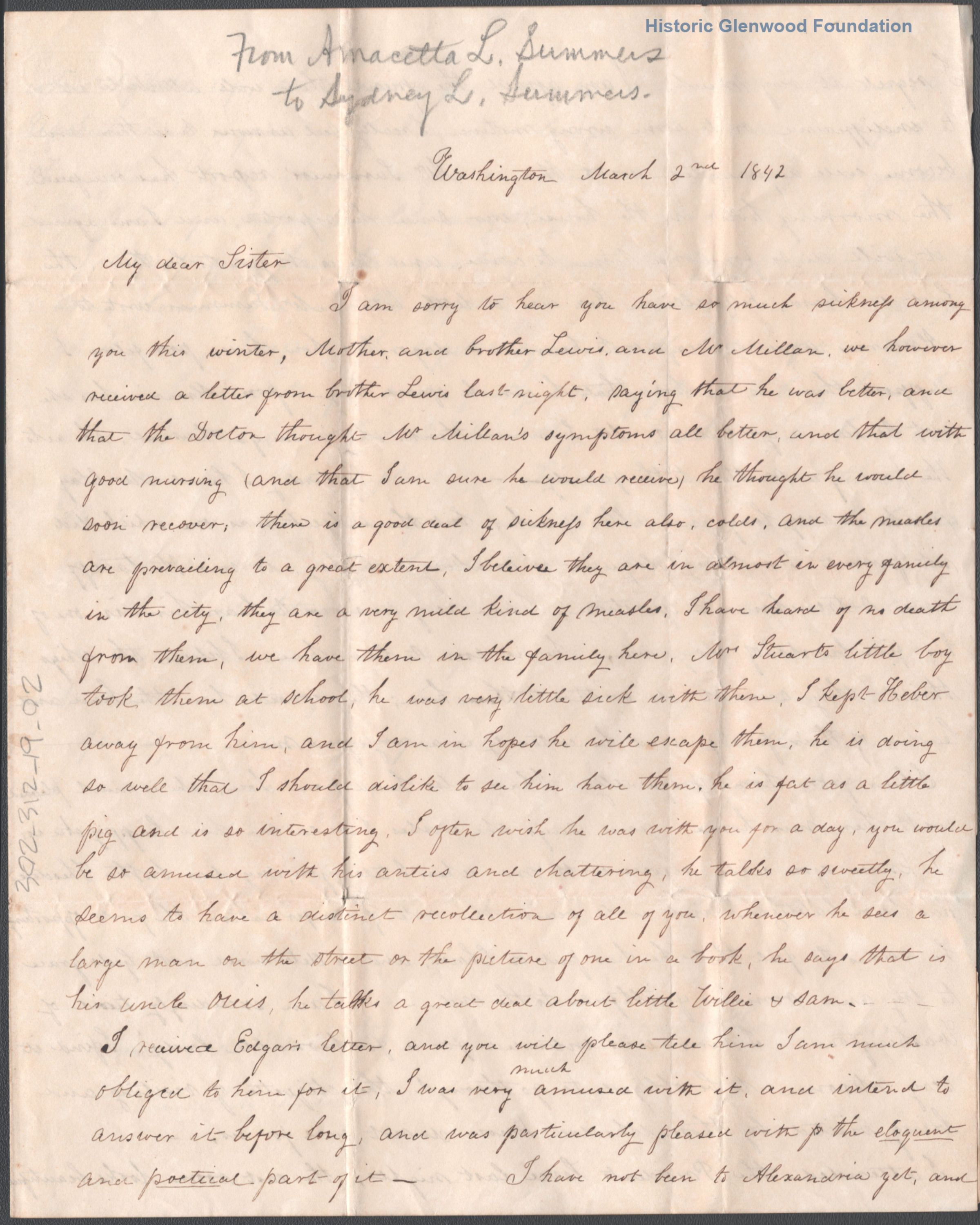 Sydney Lucy Summers Summers from Amacetta Laidley Summers, March 2, 1842