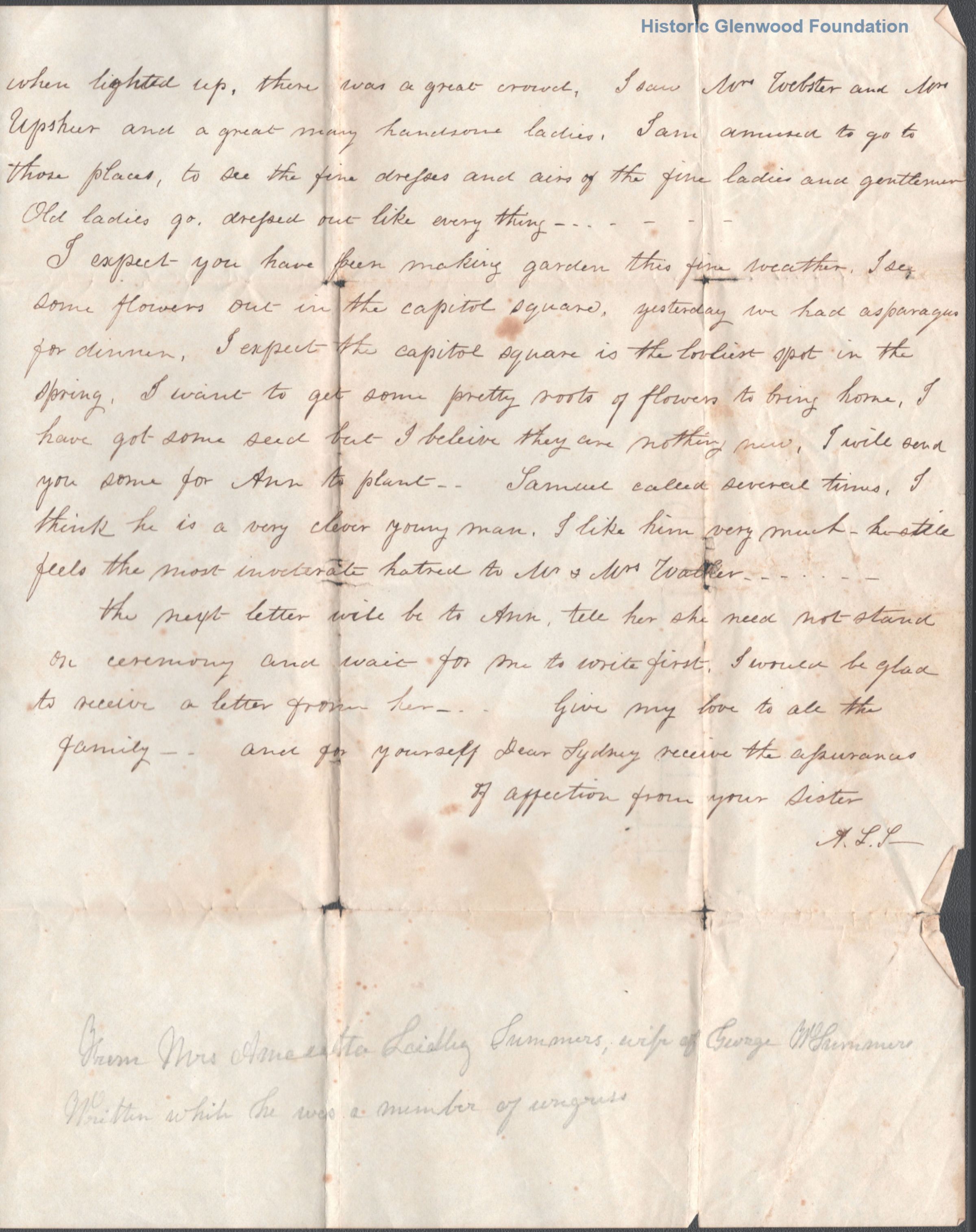 Three page letter to Sydney L. S. Summers from her sister-in-law, Amacetta Laidley Summers