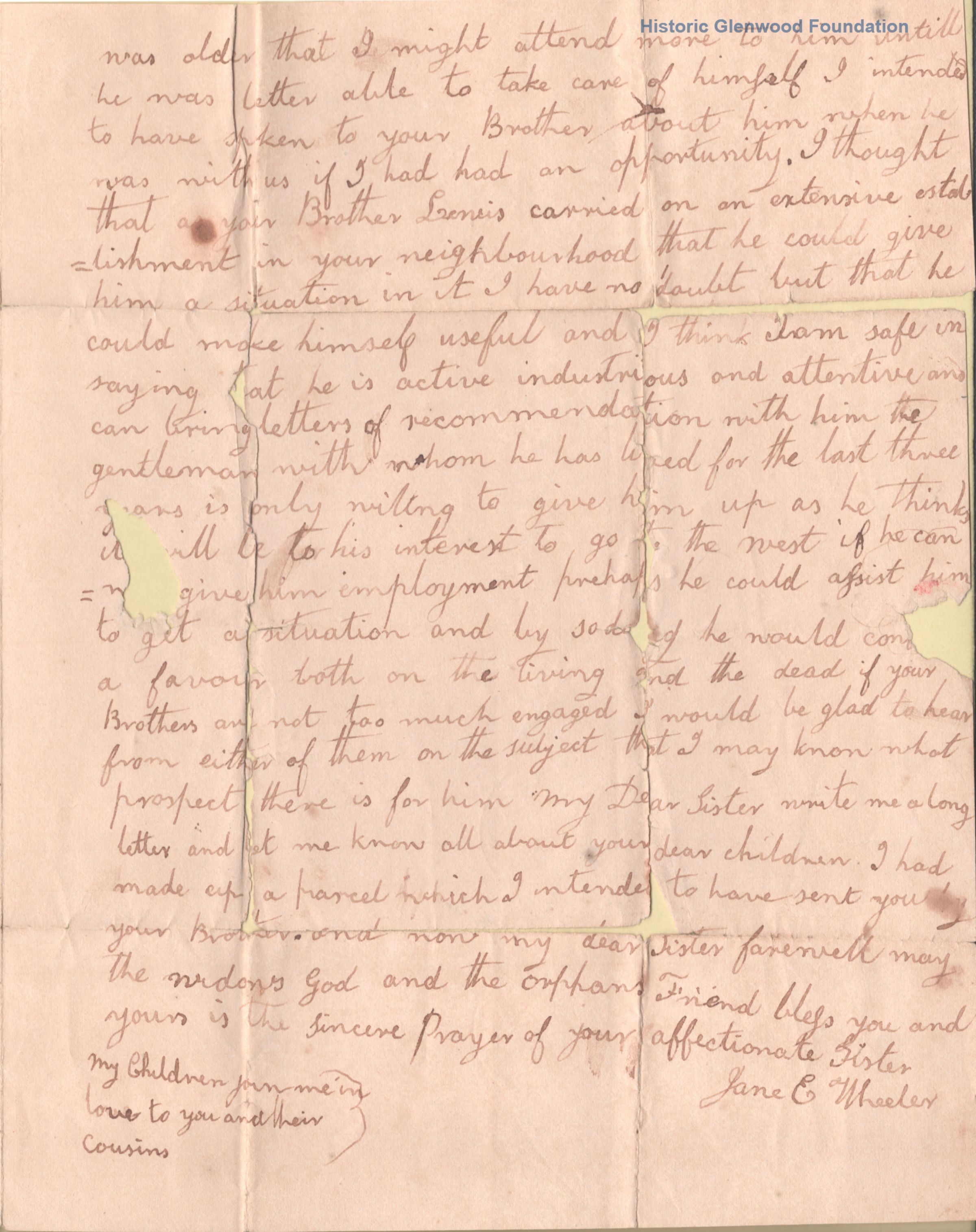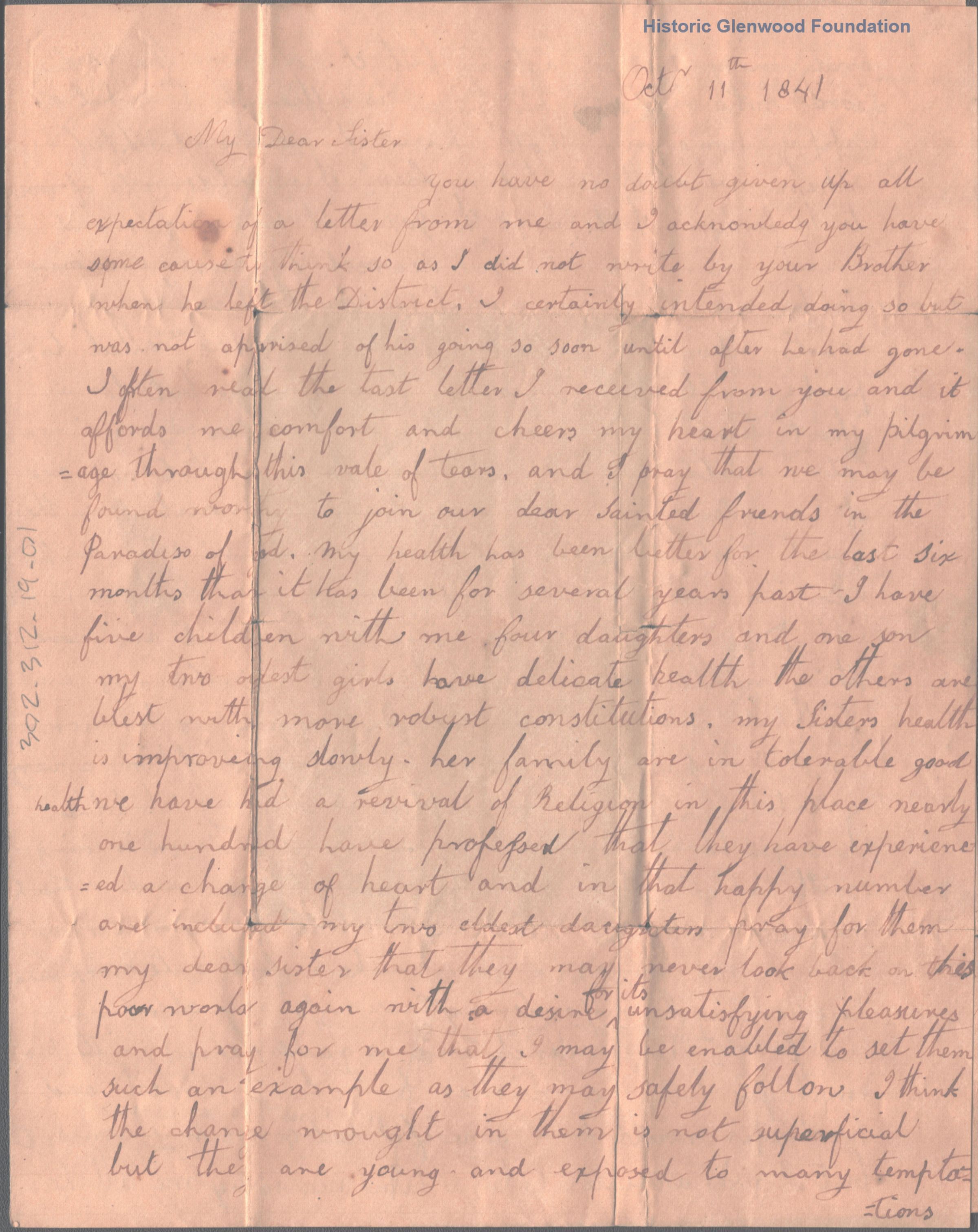Sydney Lucy Summers Summers from Jane E. Wheeler, Oct. 11, 1841Entry/Object ID