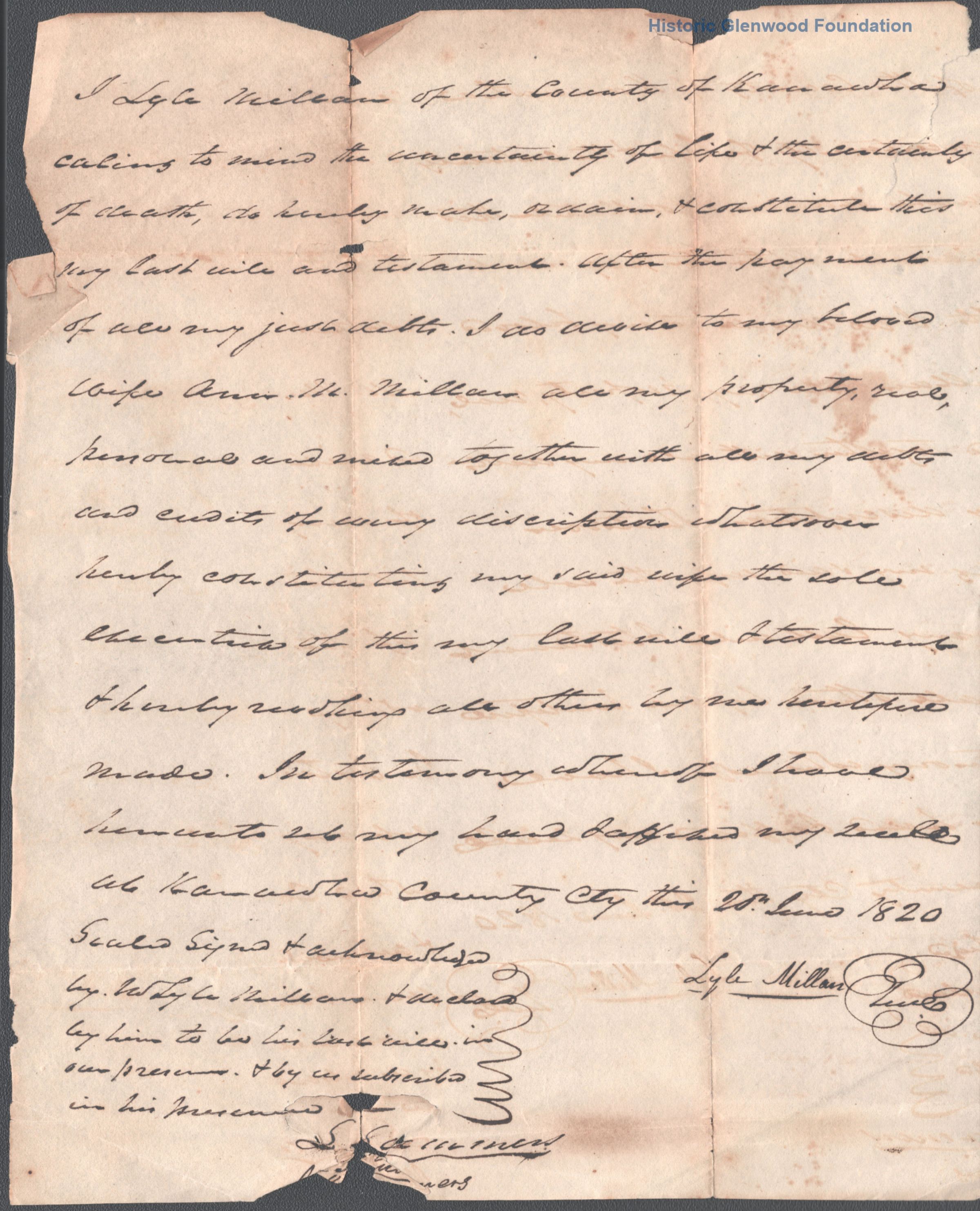 Will of Lyle Millan, dated June 2,1820