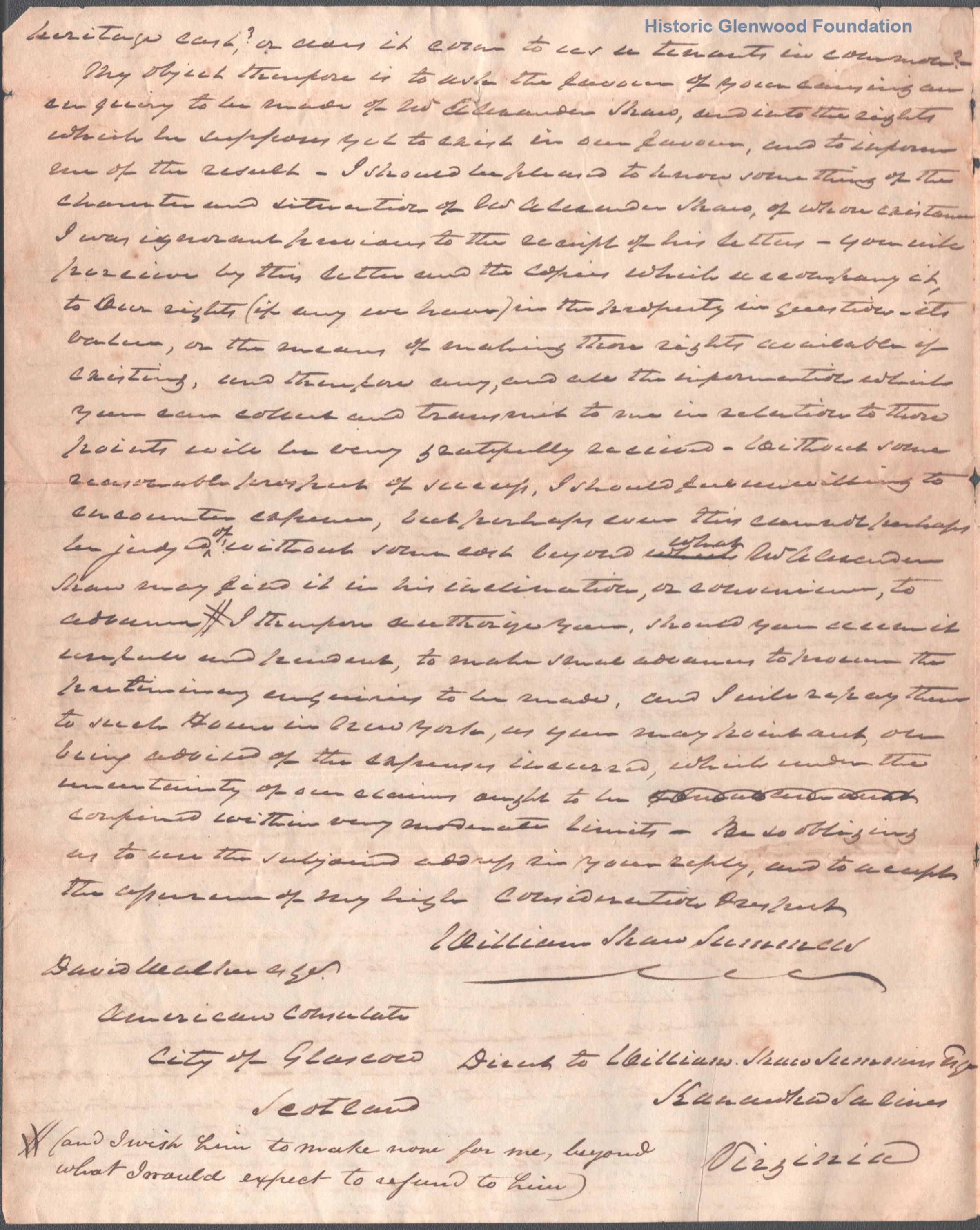 William Shaw Summers to David Walker, March 1833