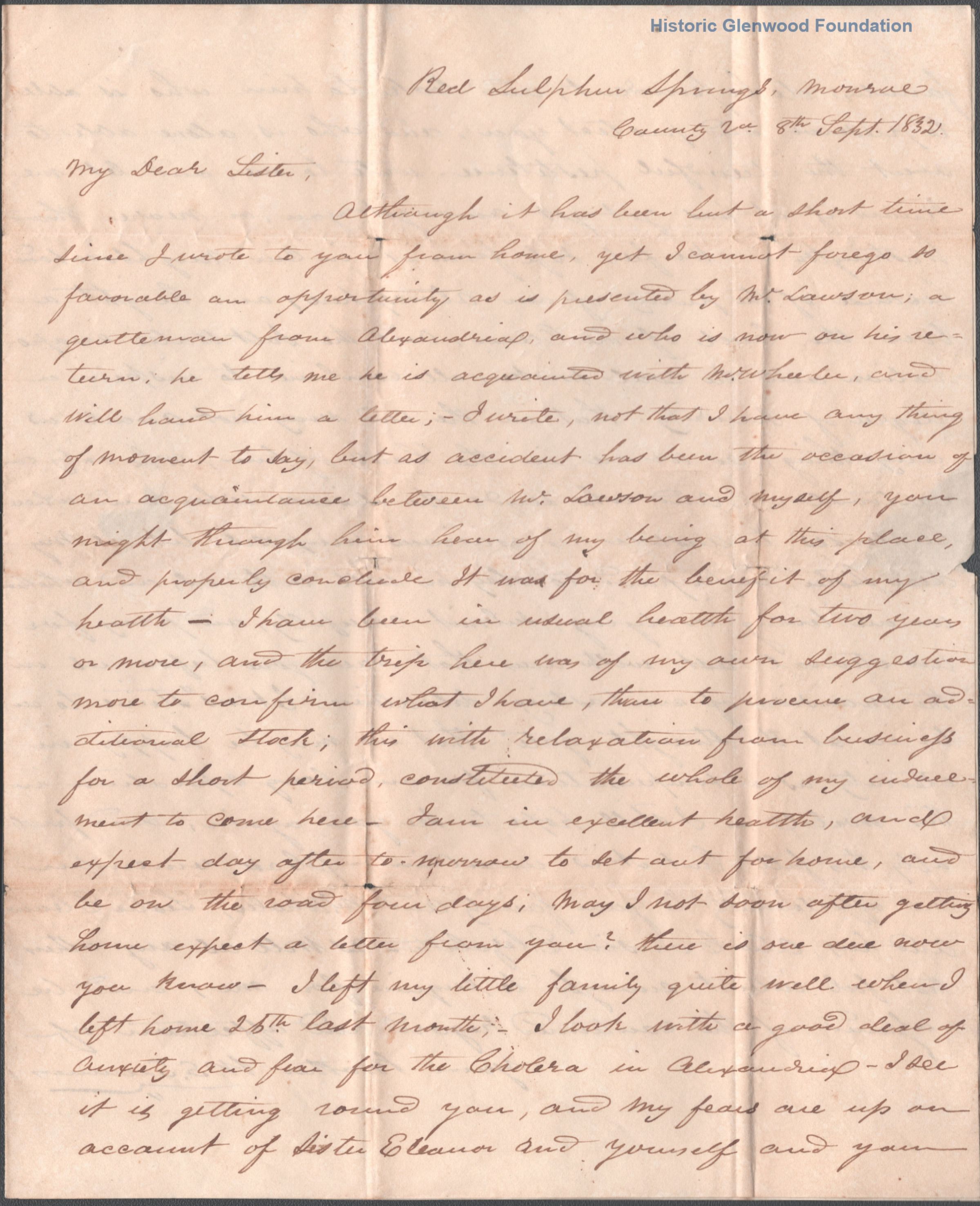 William Shaw Summers to Jane E. Wheeler, Sept. 8, 1832