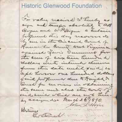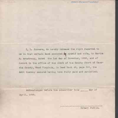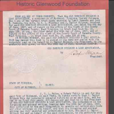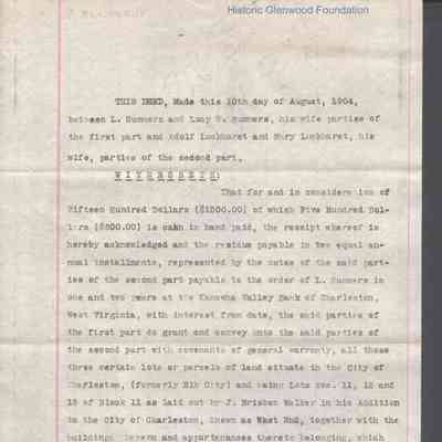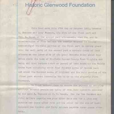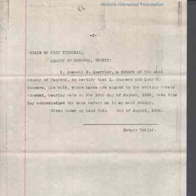 Lewis Summers, Jr. deed transferring Glenwood to Lucy S. Quarrier, Elizabeth G. Quarrier and Alex W. Quarrier, Jun 30, 1943