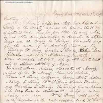 Amacetta "Amy" Summers to "Aunt Lizzie," (Elizabeth W. Wickes), Dec 19, 1890