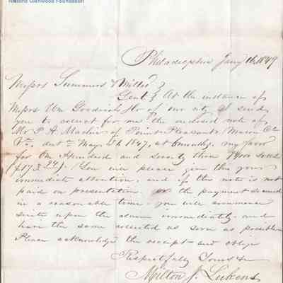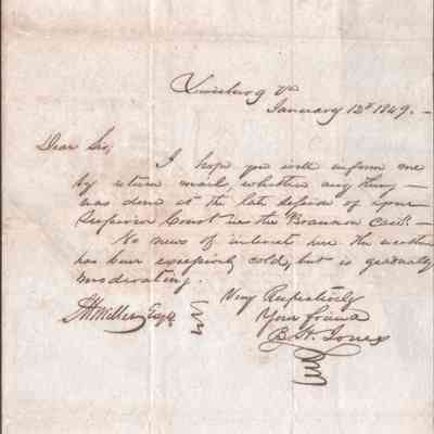 Amacetta "Amy" Summers to "Aunt Lizzie" (Elizabeth W. Wickes) and "Lewis," (probably her brother Lewis Summers, Jr.) Jan 17, 1896