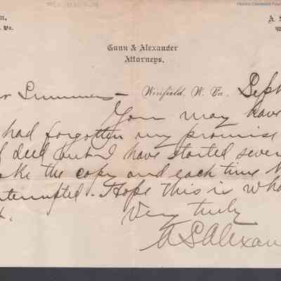 Russell G. Quarrier from Elizabeth S. Quarrier, Sep 7, 1890