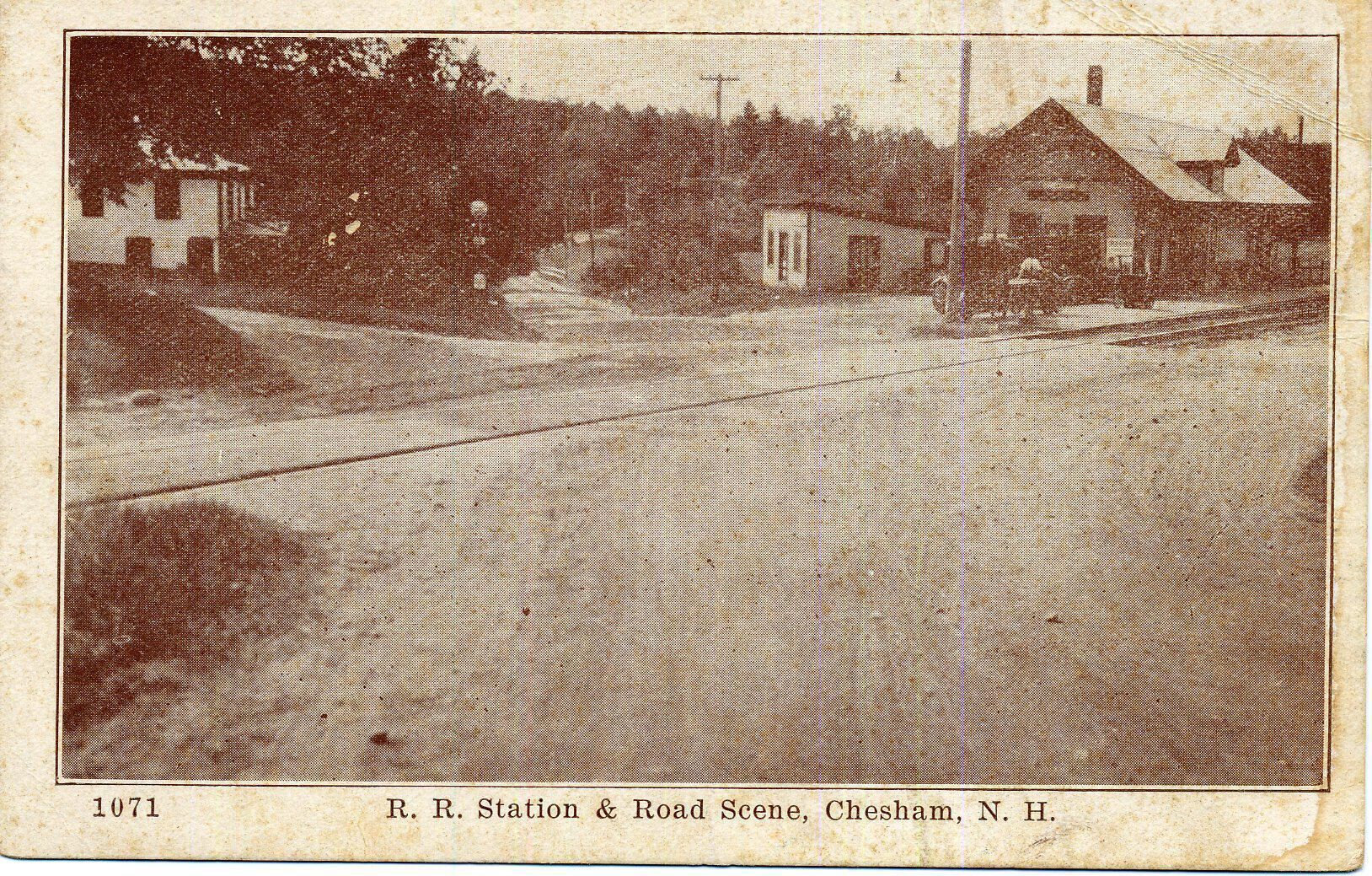 "1071 R. R. Station & Road Scene, Chesham, N. H."