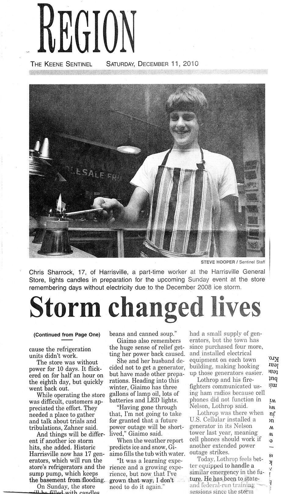 Memories of the devastating ice storm kept alive at the store. photo p. 6. Photos with 6-column coverage begun on page 1, cont'd p.6.