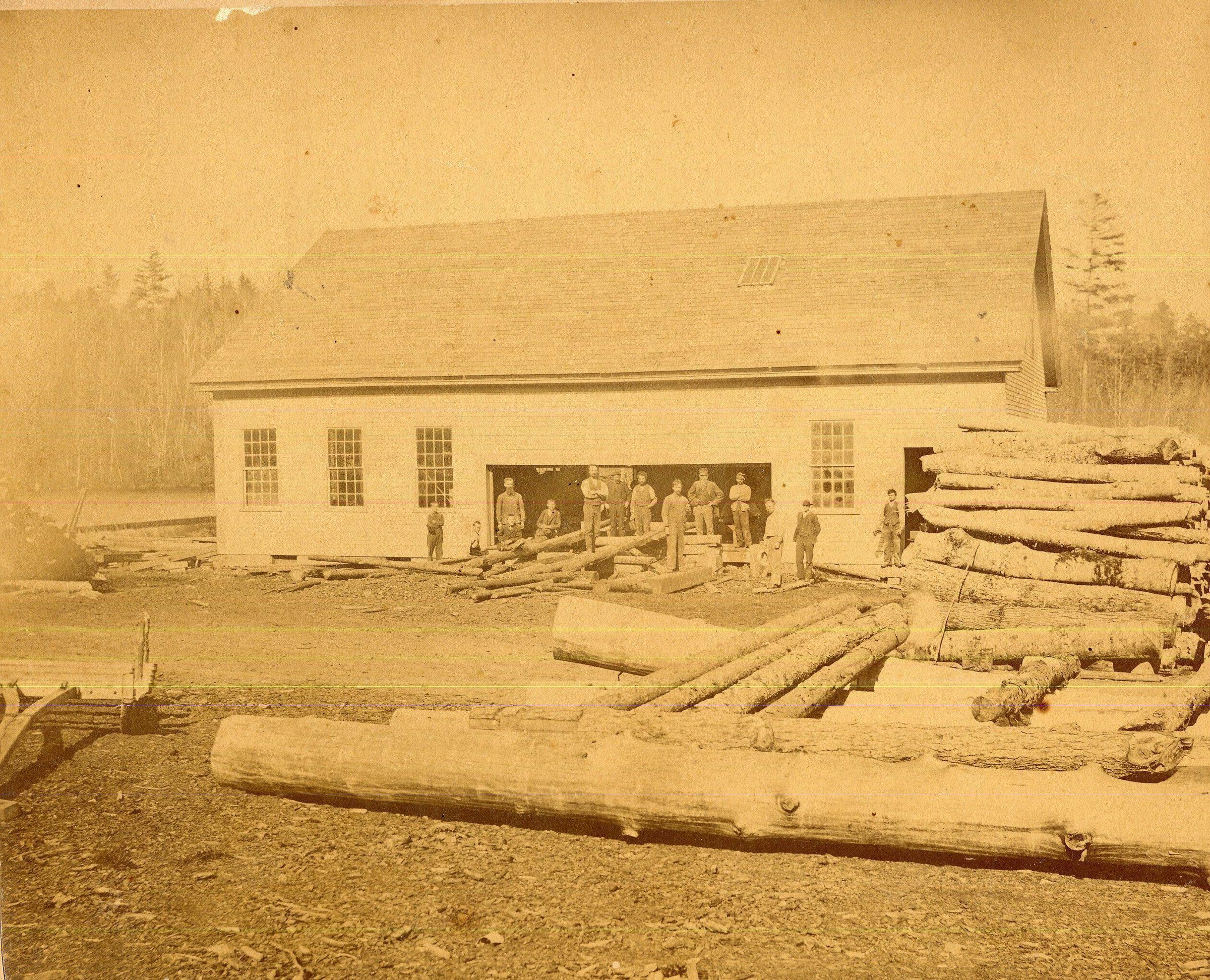 Woodenware mill at Eastview. Dates unknown. Probably taken during ownership of Charles and Henry Farwell, who bought it in 1870's. Mill produced lumber and clothespins.
