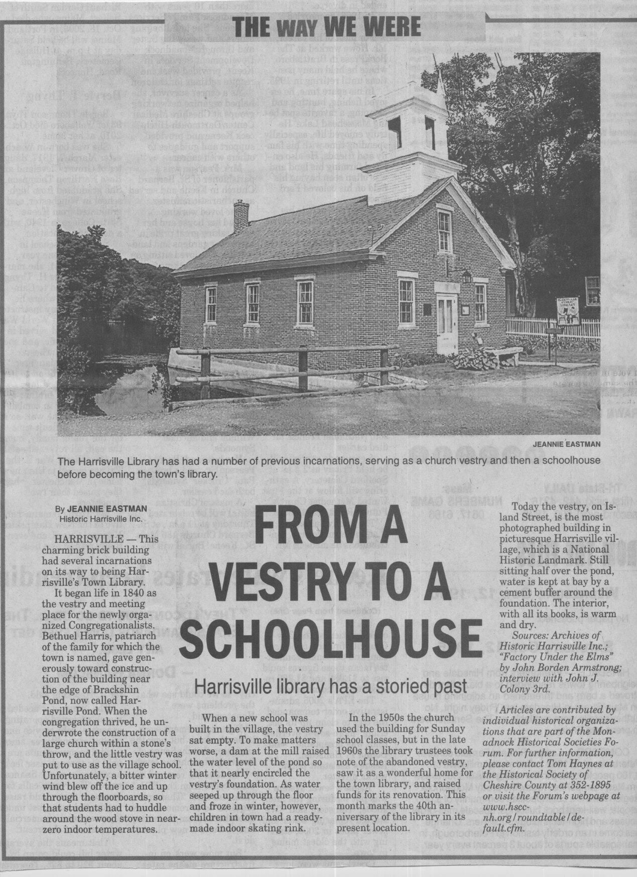 From a Vestry to a Schoolhouse: Harrisville library has a storied pastDescription