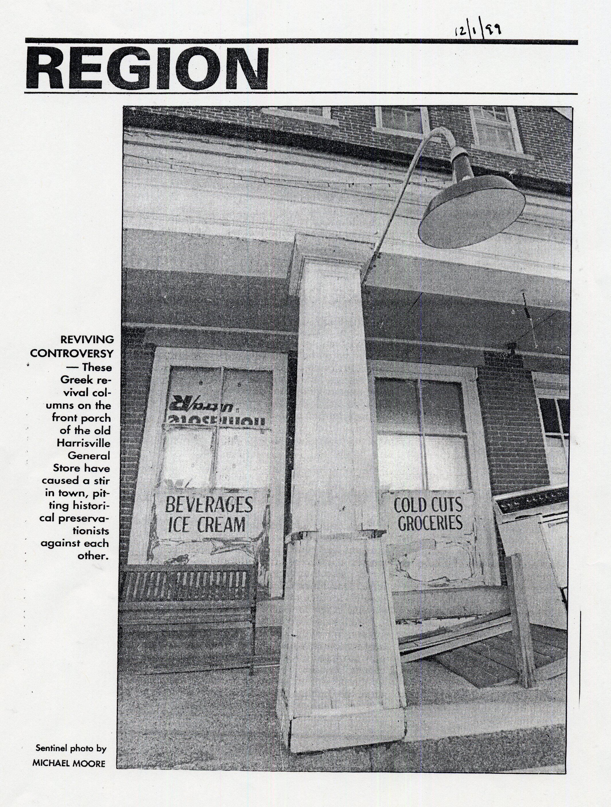 Keene Sentinel article about controversy about the restoring of the Greek Revival colums at the General Store