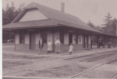 B& W copy of negative of Harrisville RR Station. Copied ~ 1983 by Roger Packard, Harrisville, NH