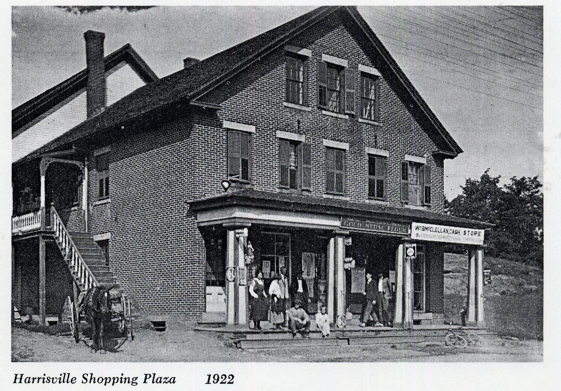copy of a photograph showing the front of the General Store with several people and a horse and carriage. Named McClellan Cash Store at the time.