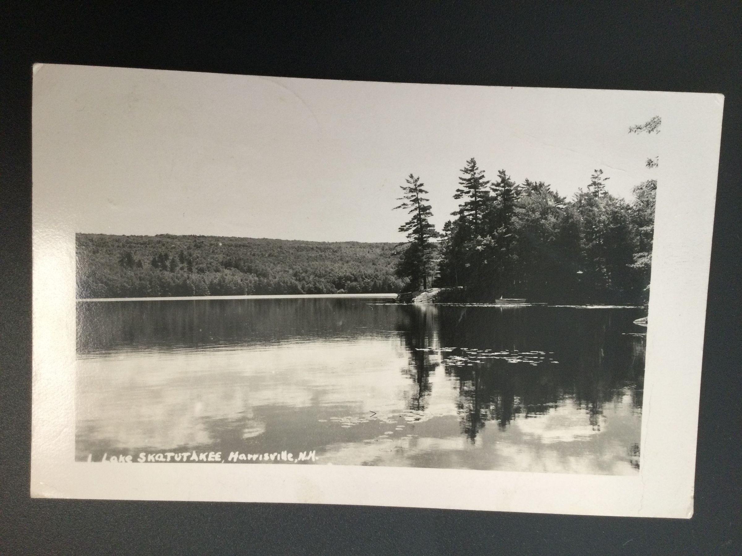 Postcard of Lake Skatutakee, Harrisville around 1957 written from Maria Collier to Caro Shugg