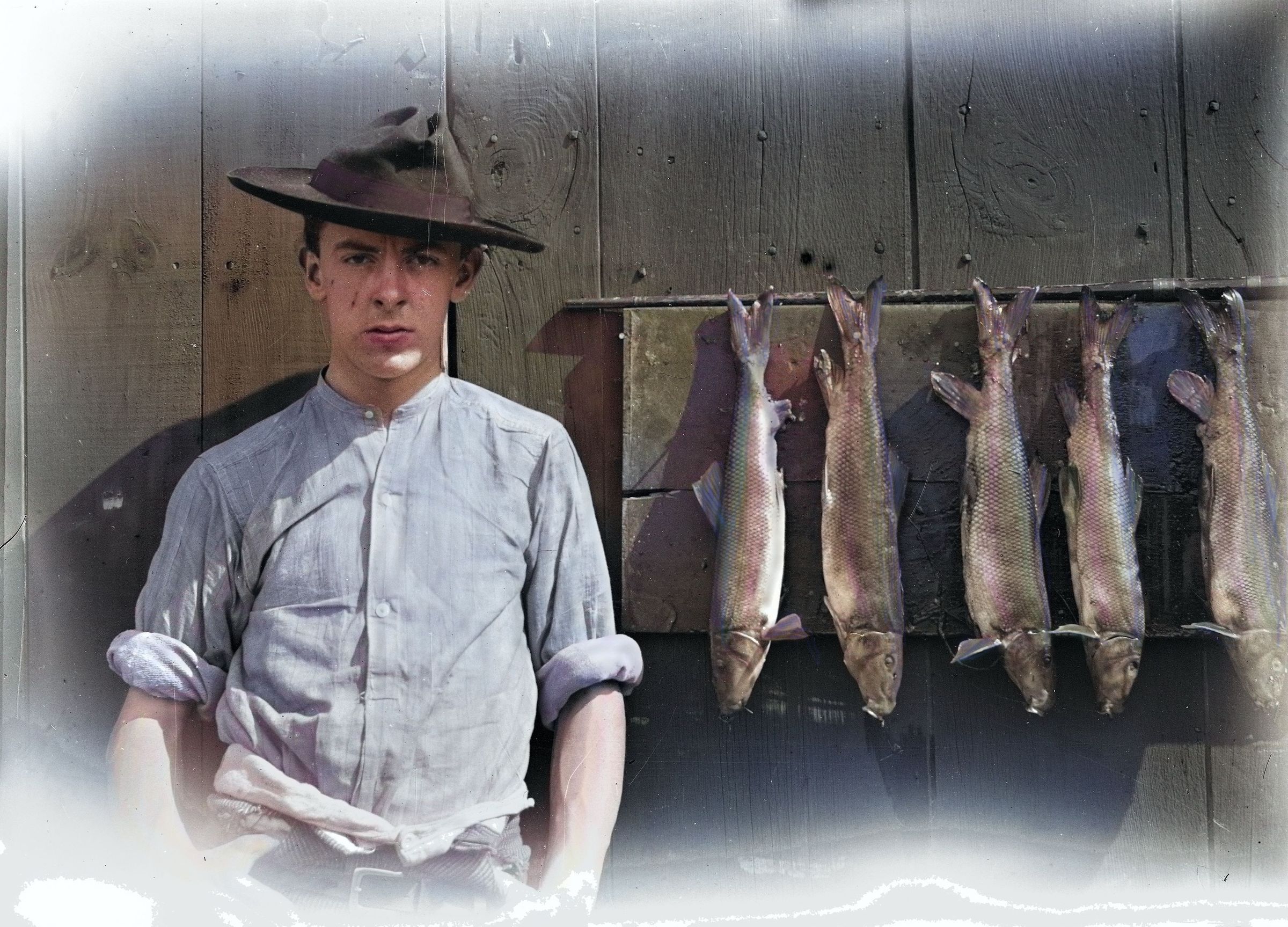 Colorized photograph, original image from Fred M. Travis Glass Plate Negative Collection, c. early 1900's, colorized and printed on canvas for "Summer in Harrisville Exhibit at Harrisville General Store August 2023.