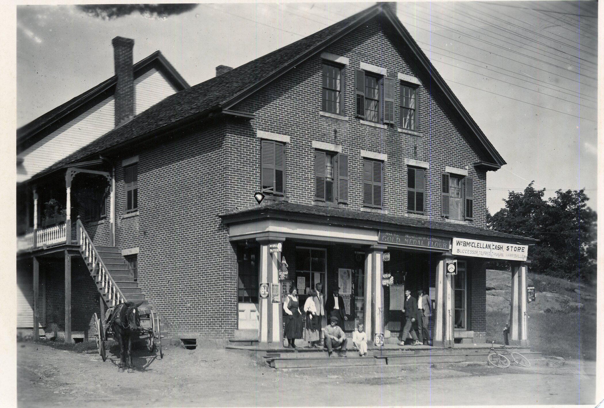 B&W photo of Harrisville General Store under ownership of Wm. B. McClellan c.1920's. He took over in 1922.