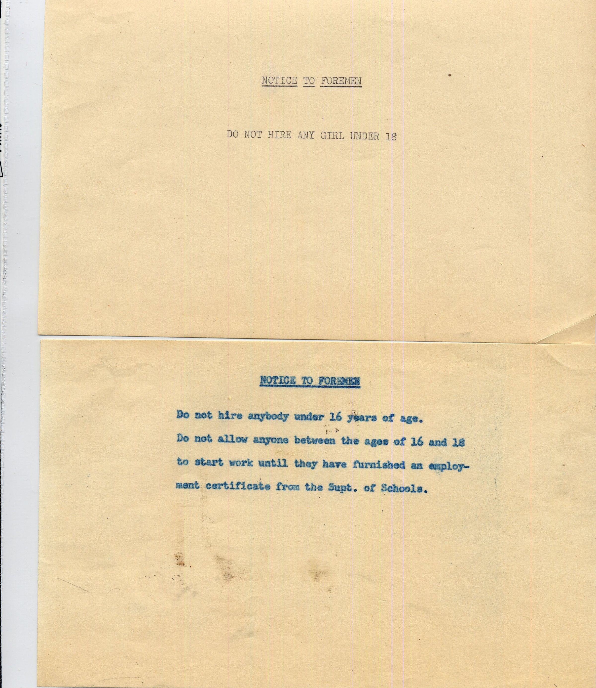 Brief hand typed notices regarding hiring.