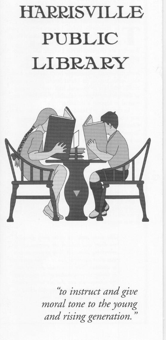 Pamphlet contains brief history, staff, trustees, and hours of service of the Harrisville Public Library. Not dated but probably current in 2005.