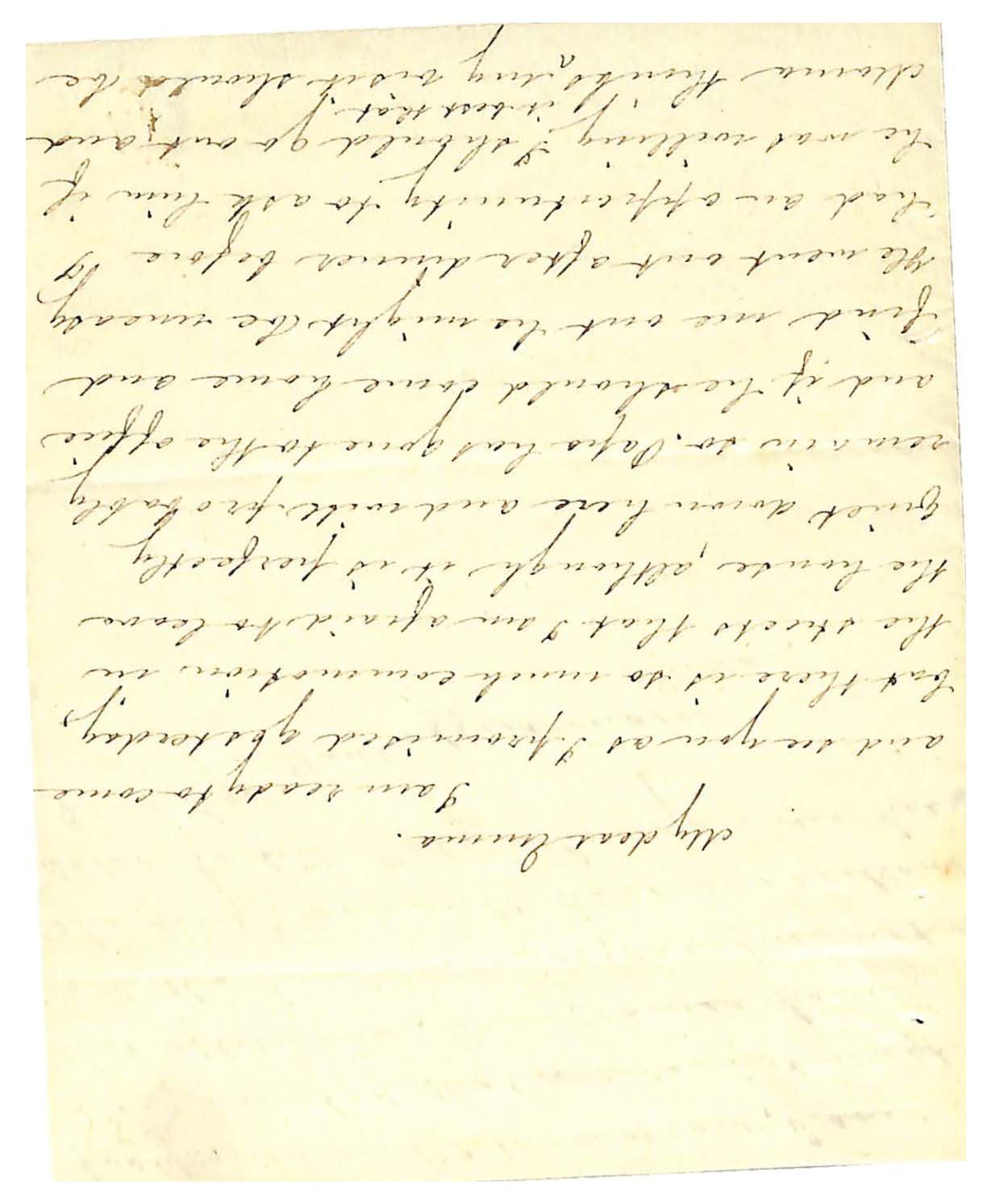 I am ready to come / and see you as I promised yesterday, / but there is so much commotion in / the streets that I am afraid to leave / the house, although it is perfectly / quiet down here and will probably / remain so. Papa has gone to the office / and if he should come home and / find me out he might be uneasy / He went out after dinner before I / had a opportunity to ask him if / he was willing I should go out and / Mama thinks [^it best that] my visit should be /