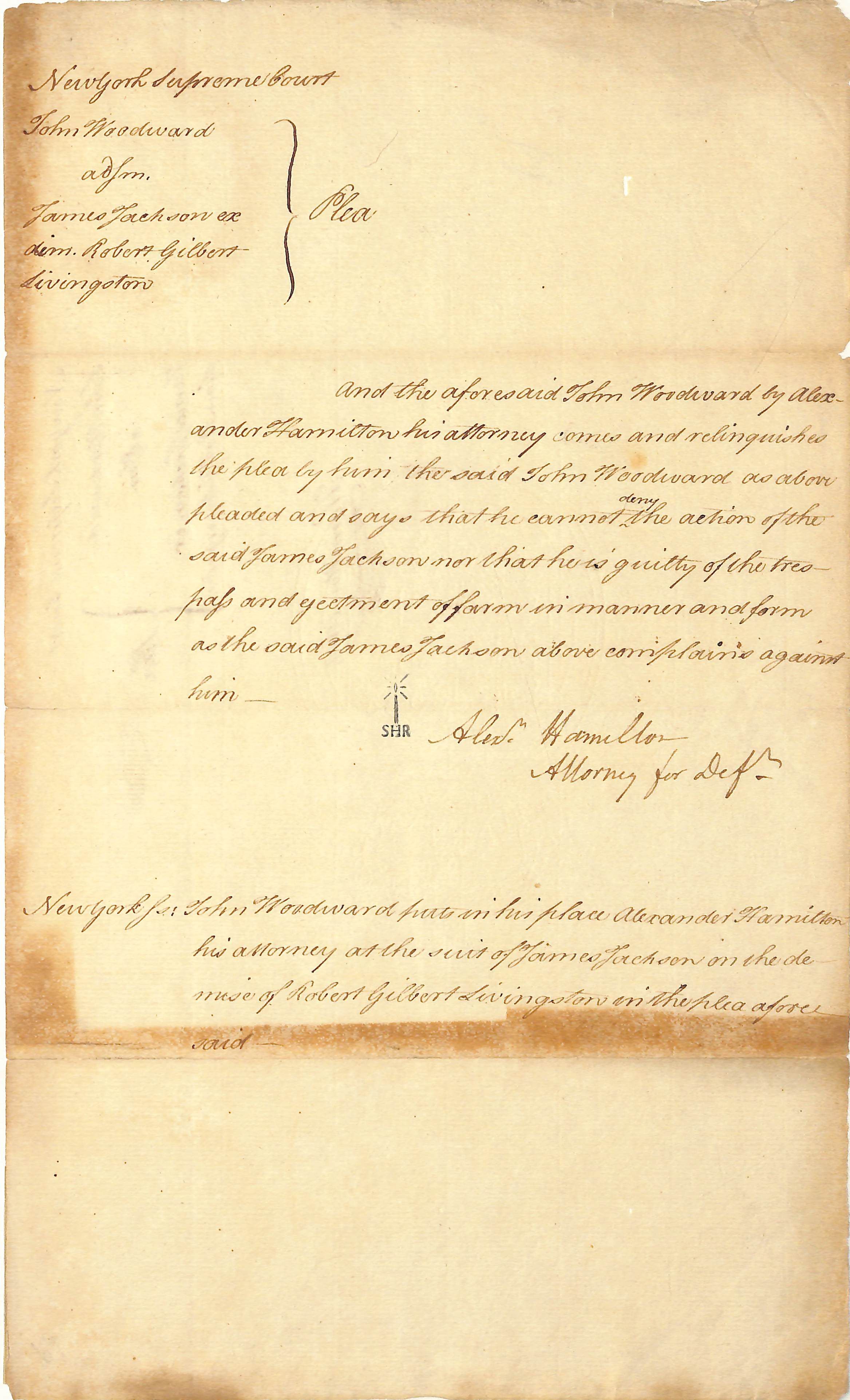 Plea - John Woodward vs. James Jackson ex. dem. Robert Gilbert LivingstonDescription