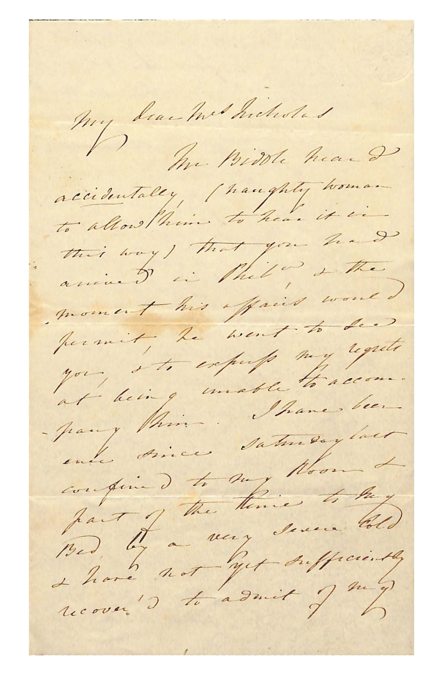 My dear Mrs Nicholas/