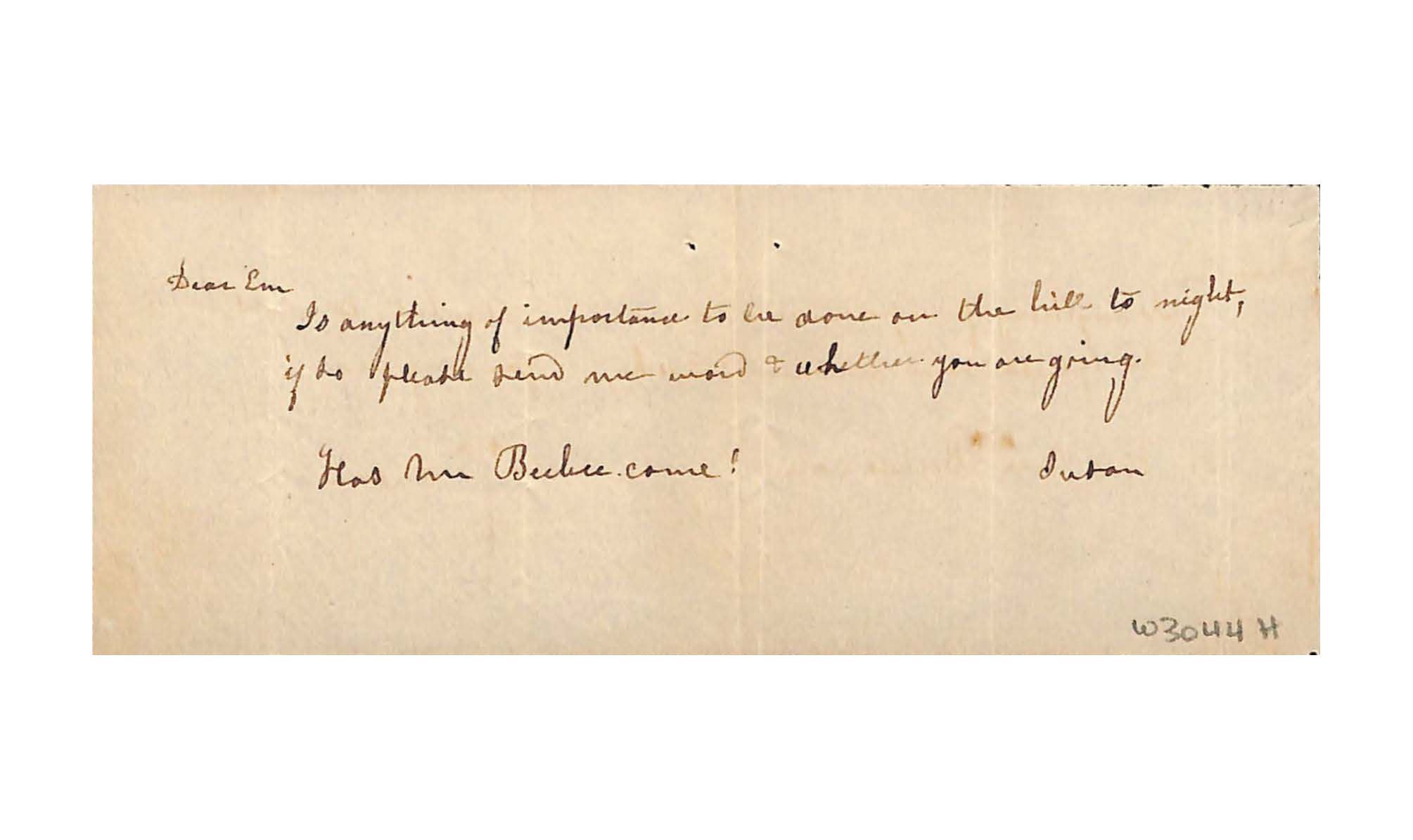 Is anything of importance to be done on the hill to night, / if so please send me word + whether you are going