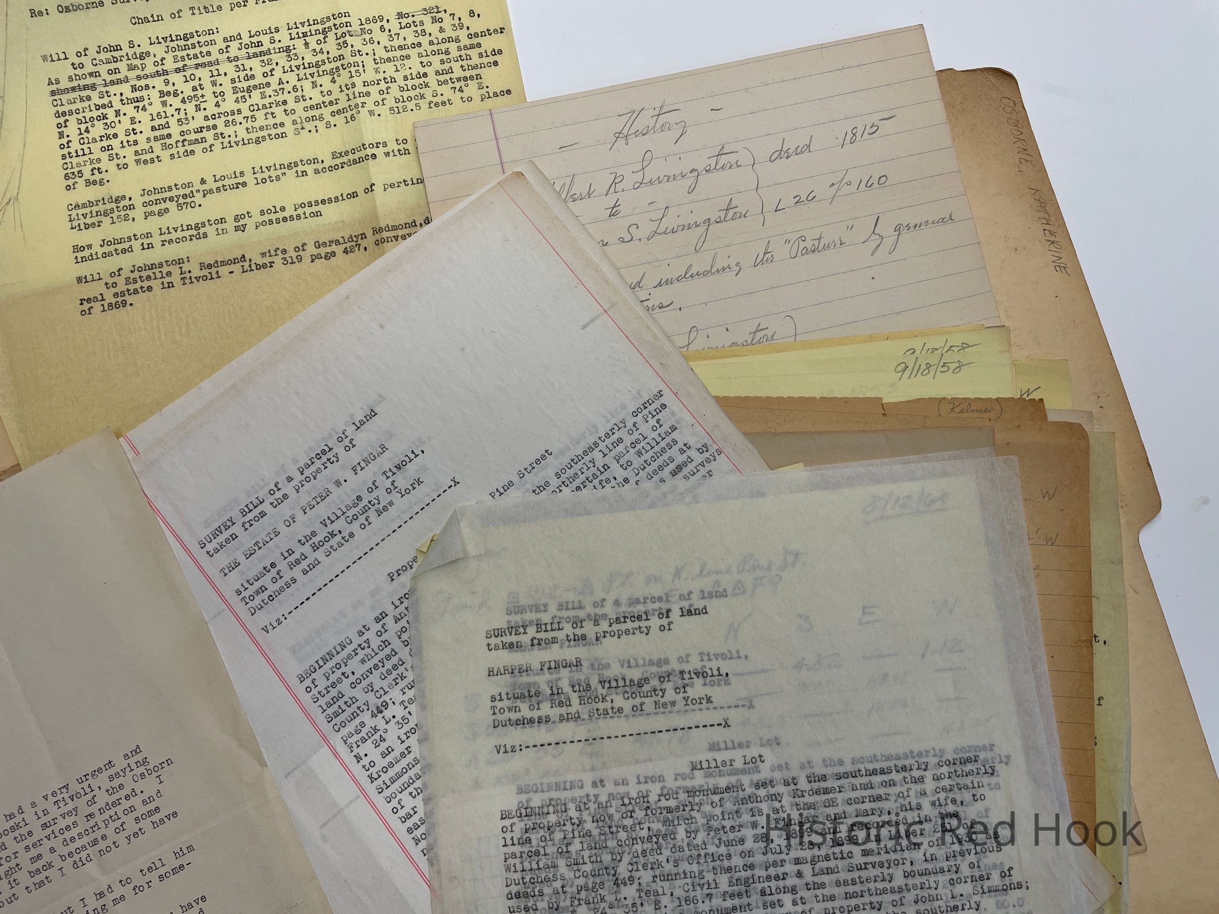 Survey: For Katherine Osborn Sep 1952 6.53 acres. Being group of lots as shown on map in 1869 conveyed to Johnston, Cambridge and Louis Livingston under the will of John S. Livingston