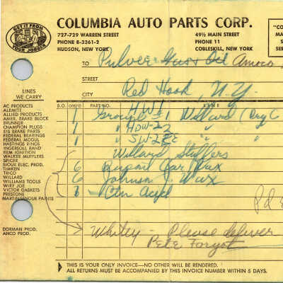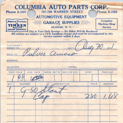 Auto Supply Receipts - 1956 Pulver Store and GarageEntry/Object ID