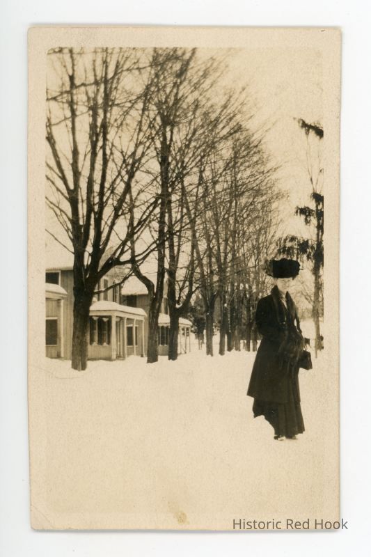 Cherry Lane - Cora Mary Fulton Petri standing in snow near front of 10 Cherry StreetPhotograph Details